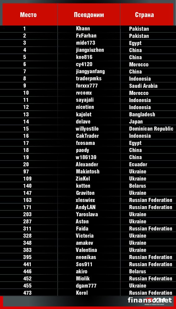 На сегодняшний день рынок Форекс является, наверное, единственным местом, на котором любой человек может получать стабильные и высокие доходы, которые не зависят от политической и экономической ситуации, о чем пишет "Украина сегодня: Finanso.net". Другими словами, валютный рынок предоставляет отличную возможность работать на себя самого и при этом получать достойную оплату своей работы.Но для того чтобы получать прибыть необходимо иметь определенные знания, которые порой не так уж и легко получить самостоятельно. "Но если вы, как и тысячи других людей, которые хотят получать прибыль на рынке Форекс, захотите принять участие в беспрецедентной по своей масштабности и инновационной Арене конкурсов ведущего Форекс-брокера мира – компании XM, то вы сможете освоить рынок, не прилагая для этого никаких титанических усилий", - отмечают эксперты журнала для инвесторов "Биржевой лидер". ![]() Благодаря этому проекту, который собирает в одном месте различные конкурсы, рассчитанные на разные категории людей, которые работают на рынке, многие клиенты компании смогли стать успешными трейдерами. Арена конкурсов – гарант роста профессионализма трейдера.Представители компании XM рассказали о том, что они решили подвести промежуточные итоги Арены конкурсов, благодаря чему пришли к удивительному заключению, поскольку многие конкурсанты смогли продемонстрировать значительный потенциал при работу на рынке Форекс, добившись значительных прибылей на рынке. Ниже представлен рейтинг трейдеров. Отметим, что в первую двадцатку вошли трейдеры, который смогли заработать от 700 до нескольких тысяч долларов на рынке Форекс, при этом трейдеры из Украины и России смогли заработать не менее чем 300 долларов США, что говорит о том, что в странах СНГ также работают талантливые люди. Среди особенностей проекта Арена конкурсов можно назвать: - Возможность выбора конкурсов, число их участников и продолжительность. - Возможность подобрать конкурс под свой тип торговли и с наиболее приемлемыми условиями участия. - Возможность участвовать одновременно в нескольких конкурсах. - Конкурсанты получают возможность использовать широкий спектр инструментов для ведения торговли. - Полученную прибыль, и призы по итогам конкурса можно вывести немедленно. Более подробно о проекте Арена конкурсов можно узнать в соответствующем разделе на сайте компании XM. |