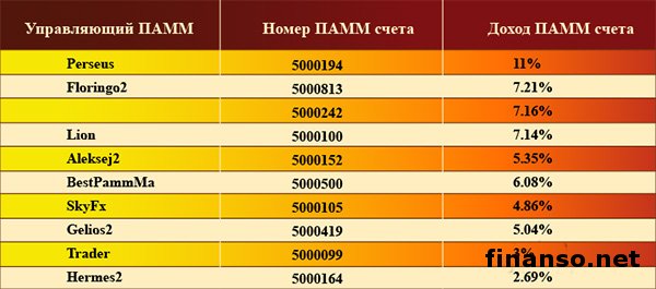 Но для того чтобы получать действительно стабильные доходы на рынке Форекс, человек должен обладать определенными знаниями, а также уметь грамотно применять эти знания на практике. А если вы не хотите или не можете самостоятельно торговать на рынке Форекс, то на сегодняшний день имеется достаточно много возможностей получения прибыли и без непосредственного участия в торгах. Так компания "Пантеон-Финанс", лучший инвестиционный брокер 2013 года, предлагает инвесторам такой инновационный продукт как ПАММ-счета, благодаря которому инвестор может вложить свои средства в счет профессионального управляющего, который будет приносить стабильные и высокие прибыли. Доходность ПАММ-счетов в течение последней недели.В течение последней недели инвесторы ПАММ-счетов компании "Пантеон-Финанс" смогли получить впечатляющие прибыли. Отметим, что в плюсе оказались все счета, как агрессивные, так и сбалансированные, и консервативные. В то же время лучший результат смог показать трейдер Perseus – 11%, что на 1% больше, чем предлагают многие банки в течение года. Другими словами, инвесторы в ПАММ-счета компании получают больше средств на протяжении недели чем банковские вкладчики в течение года. Результаты ПАММ-счетов за последнюю неделю выглядят следующим образом: Как можно увидеть в данной таблице, в течение последней недели первая шестерка управляющих смогла преодолеть уровень доходности в 5%, что принесло инвесторам значительную прибыль. Более детально с информацией о существующих ПАММ-счетах можно ознакомиться в соответствующем разделе на сайте компании "Пантеон-Финанс", где также можно быстро заключить соглашение с понравившимся управляющим, который будет приносить вам стабильные доходы. |