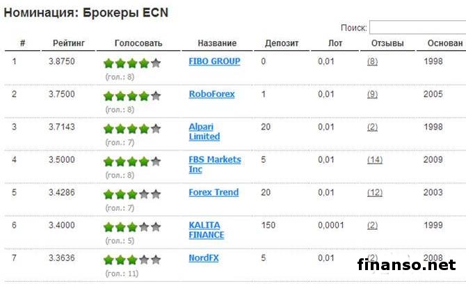 Брокеры ECN предоставляют ордерам трейдеров возможность взаимодействовать с ордерами других трейдеров. Они предлагают место для проведения торгов, где все участники процесса – банки, участники рынка и трейдеры – ведут торги против друг друга при помощи предложения цены внутри системы. Все участники этого процесса взаимодействуют внутри одной структуры и имеют возможность получать наиболее подходящие предложения для ведения торгов на текущий момент времени. Все ордера перекрываются между противоположными сторонами в реальном времени. За все это часто взимается комиссия, однако величина ее весьма несущественна. Как выглядит таблица лидеров в данной номинации, можно увидеть на рисунке.