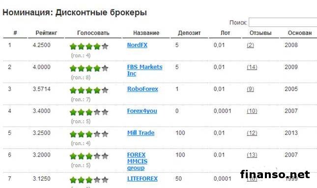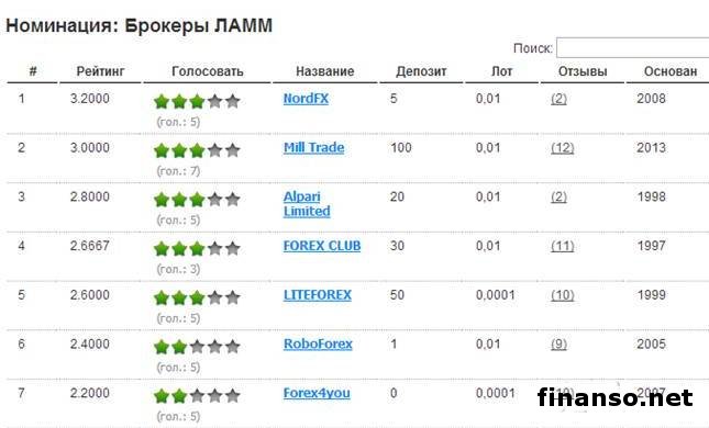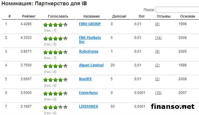 Номинации брокеров на рынке Форекс.