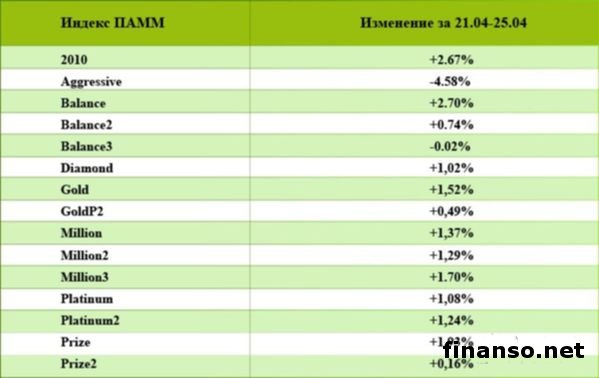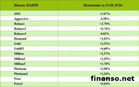 Каждый желающий, без особых знаний и необходимости переквалифицироваться может, в нынешних, сложных для бизнеса условиях получать стабильные доходы, информируют корреспонденты издания «Украина сегодня: Finanso.net».Индексы ПАММ счетов лучшего мирового форекс брокера ForexTrend помогают получать высокие и стабильные прибыли, превышая по этому показателю не только банковские процентные депозиты, но и индексы гигантов биржевой индустрии (Доу Джонс, S&P 500, RTS, Nikkei, Nasdag). Большинство этих инвестпродуктов инвесторов ПАММ получили за последнюю неделю около 2,70 процентов дохода или около одиннадцати процентов в месяц и почти ста тридцати процентов в год. Ведущие мировые индексы, при этом, в среднем показали только около полутора процентов. Из четырнадцати индексов ПАММ только два зафиксировали минус. Тысячи инвесторов знают, что сегодняшний минус Агрессивных индексов это плюс завтра. У компании популярны Консервативные индексы (дающие стабильные доходы при минимальных рисках) и индексы ПАММ Сбалансированные (сочетание доходности и возможных рисков). Все они без потерь, пусть на медленной скорости, пересекли финиш текущей недели. Обеспечивая инвесторам комфорт и максимальную безопасность компания ForexTrend привлекает новых, талантливых управляющих в системе индексов ПАММ благодаря конкурсному проекту «Миллион в умелые руки» с крупнейшим на постсоветском пространстве призом в миллион долларов на ПАММ счета победителей. Участниками конкурса становятся инвесторы со стартовым капиталом от десяти тысяч долларов, что стало особенностью этого турнира. Инвесторы, наблюдая безопасность и стабильность работы трейдеров и их профессионализм, уже во время конкурса заключают с ними соглашения о сотрудничестве. Инвесторы вправе также воспользоваться действующей услугой компании «Страхование инвестиций». Прибыль инвесторов индексов ПАММ за неделю.Как отмечает издание «Биржевой лидер» индексы ПАММ стали в настоящее время самым безопасным, оптимальным, удобным и высокодоходным вариантом инвестирования. Формируя инвестпродукты компании в индексах ПАММ, всю работу за инвестора делают управляющие ТОП счетами и трейдеры. Наглядным примером для этого является сравнительная таблица ведущих мировых индексов: Доходность индексов ПАММ составила: Отрицательный, в незначительном минусе результат показали за неделю только два ПАММ индекса (Balance3 и Aggressive), а среди прибыльных необходимо отметить 2010 и Balance, принесших своим вкладчикам за неделю 2,67 и 2,70 процентов соответственно. |