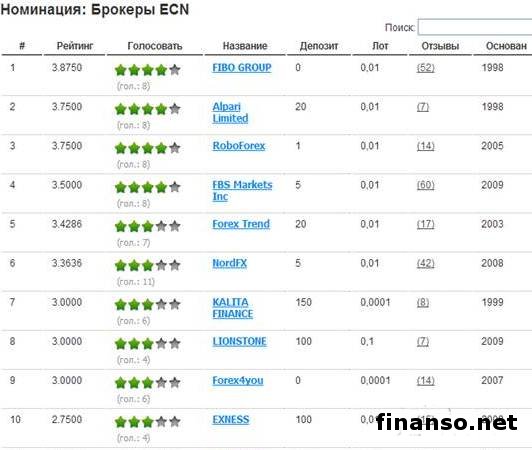 Брокеры ECN дают ордерам трейдеров возможность взаимодействовать с ордерами других трейдеров. Они определяют место для проведения торговли, где все участники процесса – банки, участники рынка и трейдеры – ведут торги против друг друга при помощи предложения цены внутри системы. Абсолютно все участники этого процесса взаимодействуют друг с другом в одной системе и могут получать более подходящие предложения для ведения торговли на определенный момент времени. Все ордера перекрываются между противоположными сторонами в реальном времени. За это практически всегда взимается комиссия, но сумма ее незначительна. В данной номинации тройка лидеров выглядит следующим образом: 1. FIBO GROUP, 2.Alpari, 3. RoboForex.