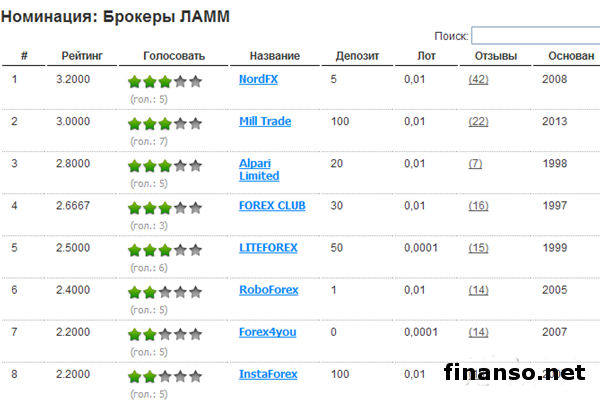 Брокеры ЛАММ работают с ЛАММ-счетами. Основные достоинства этого вида счетов прослеживаются в том, что они словно «отзеркаливают» сделки трейдеров, объем сделки при этом высчитывается автоматическим способом. У инвесторов Форекс есть возможность подключить либо отключить управляющего счетами в любое угодное время. Прибыли и убытки распределяются по завершению торгового интервала. Все вопросы, имеющие отношение к копированию сделок, система решает самостоятельно. Управляющему надо лишь заниматься торговлей по выбранной стратегии. Лидерские позиции расположились в этой номинации следующим образом: 1. NordFX, 2. Mill Trade, 3.Alpari.