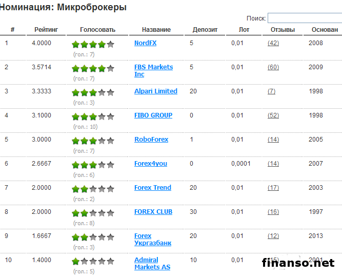Микроброкеры идеально подходят для начинающих трейдеров, которые настороженно относятся к активным рискам и не очень хорошо владеют ситуацией на Форексе. Сегодня огромное число брокеров работает с микросчетами, дающими возможность новичкам рынка Форекс начать торговую деятельность, имея на счетах начальный депозит, не превышающий 50 долларов США. Это вселяет уверенность в трейдеров и не заставляет их принимать рисковые решения по неопытности. Места распределились в этой номинации следующим образом: 1. NordFX, 2. FBS Markets Inc, 3.Alpari.