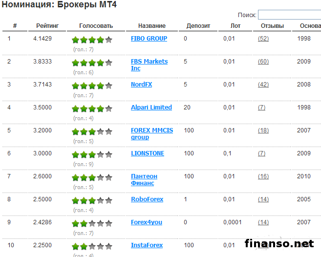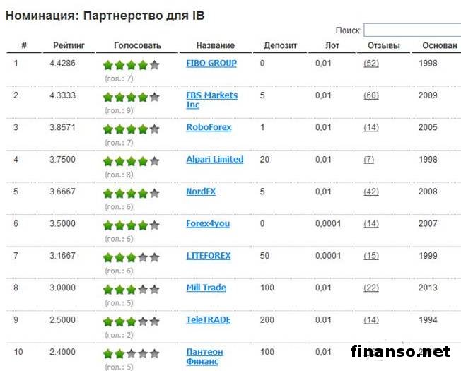 Номинанты среди брокеров на Форексе.
