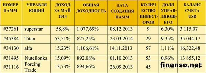 Так, компания RVD Markets предоставляет своим клиентам уникальные возможности для получения высоких прибылей. Речь идет об ПАММ счетах, которые позволяют инвесторам вкладывать свои средства в тот или иной счет и больше ничего не делать, а только получать прибыль. Деньгами инвестора управляет профессиональный участник рынка, а участие его собственных денег в торговле является дополнительным стимулом для получения инвестором прибыли. Результаты пятерки лучших ПАММ счетов в мае.По итогам мая пять лучших ПАММ счетов компании RVD Markets продемонстрировали просто впечатляющие результаты, а лидер ТОПа практически достиг 60% прибыли, о чем говорят аналитики журнала для инвесторов «Биржевой лидер». Совсем неудивительно, что текущие ПАММ счета лидируют по количеству инвесторов, что говорит о большом объеме привлеченного капитала, а чем больше капитала – тем больше прибыли он приносит. Стоит отметить, что все типы ПАММ счетов принесли прибыль, как консервативные, так и сбалансированные и агрессивные. В нижеприведенной таблице предоставлены итоги работы ТОП 5 счетов компании RVD Markets в течение мая: Как можно увидеть, лидерами доходности являются ПАММ счета, которые находятся под управлением трейдеров superstar и Titan, счета которых получили 58,8% и 53,51% прибыли соответственно, но и другие управляющие смогли заработать довольно крупные суммы. Представители компании RVD Markets отмечают, что, наверное, главной особенностью их ПАММ счетов является стабильность, которая в совокупности с высокими доходами позволяет говорить о том, что все клиенты компании могут получить инструмент для обеспечения финансовой независимости. |
