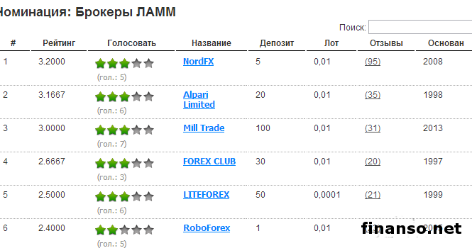 ЛАММ-брокеры осуществляют деятельность с ЛАММ-счетами. Основным достоинством такого вида счетов является то, что они будто «отзеркаливают» сделки трейдеров, объем сделки при этом определяется автоматически. У инвесторов Форекс присутствует возможность подключить либо отключить управляющего счетами в любое удобное для него время. Доходы и потери распределяются в конце торгового интервала. Все вопросы, которые касаются копирования сделок, система решает сама. Управляющему надо только заниматься торгами по определенной стратегии. Лидерские позиции в этой номинации выглядят следующим образом: 1. NordFX; 2. Alpari Limited; 3. Mill Trade.