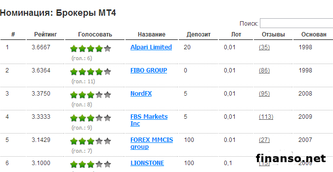 Брокеры МТ4 представляют для торговли платформу mеtatrader4, являющуюся сегодня наиболее распространенной во всем мире. Популярность она заслужила благодаря надежности и простоте в использовании. Лидерами в данной номинации выступают следующие брокерские компании: 1. Alpari Limited; 2. FIBO GROUP; 3.NordFX.