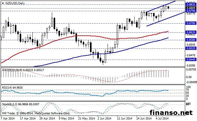 Новозеландский доллар отскочил от отметки 0,8835, которая является уровнем сопротивления и одновременно верхней границей канала, сформировав незначительную свечу, вследствие чего консолидировался, как сообщает «Биржевой лидер».