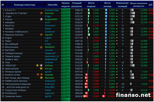 Инвестирование в современном мире доступно каждому человеку, а одним из лучших его вариантов стал Форекс-рынок, о чем сообщают корреспонденты издания «Украина сегодня: Finanso.net».На надежность выбираемого вами брокера указывает стабильность получаемых у него доходов, а благодаря фондам инновационным ПАММ-счетам и фондам этих ПАММ-счетов одной из таких стабильных компаний стал один из лучших Форекс-брокеров мира - компания «Пантеон-Финанс». Инвестпроекты «Школа управляющих», «Школа инвесторов» и особенно последний из них - «Арена инвесторов», ставший основным выбором для клиентов из Беларуси, Казахстана, Украины и РФ, позволили в очень короткий период получить знания профессионального уровня. Главное, что дает участникам «Арены инвесторов» этот конкурс, это научиться верно формировать оптимальный риск и доходность, вырабатывать свою стратегию, формировать инвестпортфели из самых перспективных на Форекс-рынке ПАММ-счетов, рационально диверсифицировать свои средства, работая с «Пантеон-Финанс». По свидетельству представителя этой компании Е. Вечканова, сообщает издание «Биржевой лидер», проводимый брокерской компанией «Пантеон-Финанс» конкурс «Арена инвесторов», за счет множества сервисов, продуктов и эксклюзивных технологий обеспечивает его безопасность, эффективность, надежность и очень высокую доходность, которая достигла по итогам третьей недели августа до 24,5 процента. Последние результаты «Арены инвесторов».По итогам августа турнирная таблица конкурса «Арена инвесторов» представлена следующим образом: По итогам августа на первом месте идет Anesteziolog из команды «S.K.A.U.T.+», увеличивший свой капитал на 2,4 процента за неделю и получивший доходность за месяц 9,63 процента. Участник конкурса от команды «Standby for Titanfall» под ником Kitartoan идет на втором места, он поднял свой капитал за неделю на 3,02 процента, а общую доходность за месяц - на 9,39 процента. ![]() На третьем месте участник конкурса Uliger из такой же одноименной команды, являющийся девушкой, получившей за последнюю неделю доходность 2,14 процента при итоговой месячной доходности в 9,08 процента. Месячные итоги этой участницы выглядят таким образом: |
