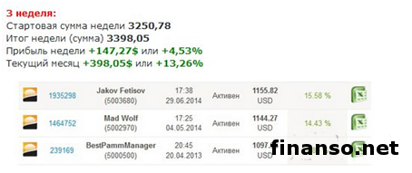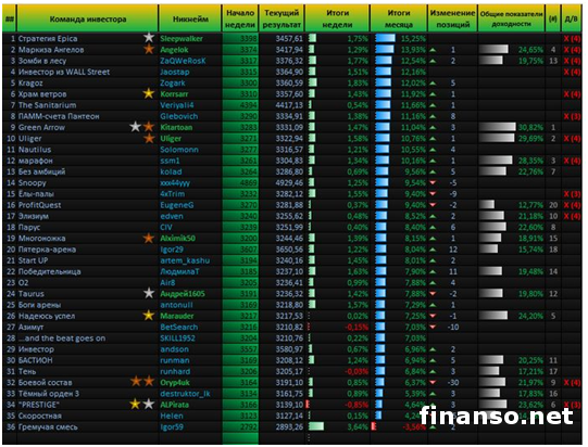С таким же успехом, как и профессионалы, инвестируют сегодня в финрынки и новички, не имеющие значительных объемов свободных средств, а серьезные возможности в этом плане они получили благодаря одному из лучших инвестброкеров Форекс-рынка компании «Пантеон-Финанс». Такую информацию передают корреспонденты издания «Украина сегодня: Finanso.net».Инвестируя в уникальные ПАММ-фонды компании, которые содержат в себе самые доходные ПАММ-счета, по мнению руководителя отдела по работе с клиентами «Пантеон-Финанс» Е. Вачканова, компания предоставляет возможность одновременно с хорошим заработком, в довольно короткое время стать профессиональным инвестором или трейдером. Только в этой компании, входящей в комитет по бюджету и финрынкам при Совете РФ, как в краткосрочной, так и долгосрочной перспективе имеется возможность зарабатывать на предметах искусства. Лучшими на сегодняшний день возможностями для оптимального получения доходов в компании представляет проект «Арена инвесторов», состязания в котором дают возможность, получая деньги с инвестирования в лучшие продукты компании, зарабатывать соответствующие призовые от брокера по итогам месяца, квартала, полугодия и года. Результаты последней недели «Арены инвесторов».Большинству участников этот конкурс принес за последнюю неделю 1,75 процента дохода, а призеры конкурса по итогам августа получили почти 30 процентов прибыли, превысив в несколько раз доходность индексов фондовых бирж, о чем рассказывает издание «Биржевой лидер». Секрет достижения высоких результатов инвестирования в рамках проекта «Арена инвесторов» связан с профессиональными качествам управляющих и грамотной работе конкурсантов, лично мотивированных к заключению высоких доходных сделок, в связи с чем их ПАММ-счета входят в портфели конкурсантов, принося высокие и стабильные дивиденты. Соревнующиеся участники «Арены инвесторов» за последнюю неделю сентября показали такие результаты: Инвестор Sleepwalker'a (Стратегия Epica), как это видно, вышел на первом месте, имея доходность своего портфеля +1,75 процента и общие показатели 15,25 процента. Эту позицию ему обеспечили счета: С недельным доходом в 1,29 процента и общим показателем прибыльности в 24,5 процента на втором месте находится Angelok (Маркиза Ангелов) со следующим портфелем на третью неделю сентября: ![]() Тройку лидеров замыкает ZaQWeRosK («Зомби в лесу»), получивший за неделю 1,77 процента уровня доходности, а за период участия в проекте 19,75 процента со следующим портфелем: ![]() Подогревает атмосферу оставшаяся неделя, подчеркнул представитель «Пантеон-Финанс», когда станут известны победители сентября и результаты первого квартала этих интересных соревнований. |