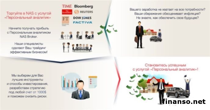 Самые разнообразные пожелания своих клиентов способны удовлетворить сегодня на Форекс-рынке брокерские компании, по убеждению аналитиков компании Nas Вroker, начиная от желающих развивать свой бизнес трейдеров, до пассивных инвесторов. Такую информацию передают корреспонденты издания «Украина сегодня: Finanso.net».Как абсолютно безопасный вид инвестирования, приносящий высокие доходы, рекламировали ПАММ-сервисы брокерских компаний с самого начала, поскольку управляющие ПАММ-счетов выбирают из успешных трейдеров. В ходе своего совершенствования появились такие инновационные инструменты, как индексы ПАММ-счетов и страхование ПАММ-счетов. Со временем брокеры предложили инвестирование в свои системы доверительного управления, гарантируя сохранность капиталов клиентов и высокие прибыли, при сохранении качества услуг. Однако далеко не каждый мог себе позволить вкладывать в ПАММ-счета десять тысяч долларов, а управляющие гарантировать рекламируемую 50-процентную месячную прибыль, поскольку очередной период могли закончить с убытками, хотя со временем потерянные деньги можно было вернуть. Но с идеей заработать быстро миллион придется все-таки распрощаться. Делайте это самостоятельно.Убить двух зайцев сразу дает возможность услуга «персонального аналитика», когда под присмотром опытного специалиста совершаются ваши сделки, достигая тем самым того же профуровня, что и при работе в ПАММ-сервисах в доверительном управлении. Под постоянным контролем находятся и ваши деньги. Совершая сделки при низких порогах входа и с минимальным спредом, указанный сервис дает возможность эффективно и спокойно торговать на рынке, обеспечивая главное право клиента брокерской компании распоряжаться свободно своими средствами. Достигнув такого же профессионализма, как и ваш персональный аналитик, по мнению специалистов Nas Вroker, вы сможете самостоятельно зарабатывать больше средств на финрынке. Это является вполне реальным, по мнению представителей Nas Вroker, поскольку анализируя ситуацию и приобретая знания с опытным наставником, лучшего способа обучения пока трудно и найти. В противовес сказанному, работая с системами доверительного управления и отстраняясь от торговли, вы так и остаетесь новичком на рынке, о чем рассказывает издание «Биржевой лидер». Являясь удачным сочетанием обучения и бизнеса, услуга «персональный аналитик» компании Nas Вroker дает реальный шанс своим клиентам стать хорошими трейдерами. |