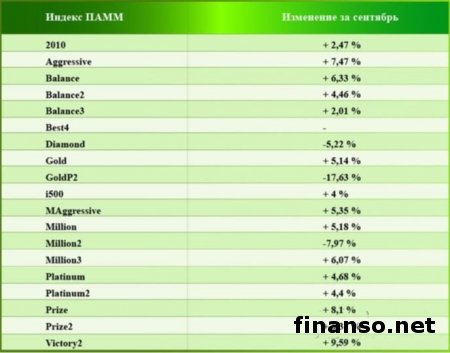 Индексы ПАММ ForexTrend в сентябре принесли инвесторам доход в 37,80%Категория: Брокеры