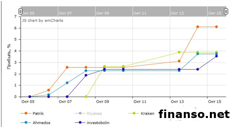 Уникальный международный конкурс управляющих, дающий возможность стать настоящим профессионалом, работающим со средствами инвесторов, совместно с известным мировым журналом Forbes организовал лучший брокер мира - компания ForexTrend. Об этом пишут корреспонденты издания «Украина сегодня: Finanso.net».Прекрасные результаты показывают ТОП 5 конкурса управляющих.В несколько раз повышается вероятность получения более высокой и стабильной прибыли, по мнению генменеджера ForexTrend А. Полишевича, если ваш ПАММ включен в индексы ПАММ-счетов. Напомним, что в указанном конкурсе принимает участие сорок ПАММ-счетов двадцати четырех управляющими и 16 индексами, в каждый из которых было инвестировано по две с половиной тысячи долларов. В стартовавший второй этап этого конкурса прошли трейдеры, показавшие доходность не меньше 50 процентов. Между 17 лидирующими участниками и восемью индексами, по свидетельству представителя компании А. Полишевича, равномерно распределены на этом (втором) этапе стартовые сто тысяч долларов, а также заработанные 19 тысяч 323 доллара. Десять лучших счетов попадут в финал по итогам последующих шестнадцати недель этого турнира, критериями оценок для которых станут «индекс Кальмара», «индекс Шарпа» и доходность. Пятерка лучших управляющих в настоящее время представлена следующим образом: Их торговля за последние десять дней отображается так: На долю капитала лидирующего управляющего Ahmedos приходится 22,6 процента при текущей прибыльности 3,14 процента (четвертое место в рейтинге). По доходности на первом месте идет Patrik (6,12 процента), второе место занимает Klyaksa (+4,88 процента), на третьем месте Kraken (+3,88), а замыкает ТОП 5 лучших управляющих investobolin, имеющий текущую доходность 3,55 процента. По словам представителя компании, вложив в лидирующую пятерку на счет по одной тысяче долларов, текущая прибыль составила бы 215,7 процента (10785 долларов), а за год на этих счетах, в соответствии с показаниями рейтинга, было бы 1602,9 процента, или восемьдесят тысяч 145 долларов. За лидерами идут конкуренты, с каждым днем наращивающими доходность, как рассказывает издание «Биржевой лидер», поэтому дальнейшая борьба будет очень острой. |