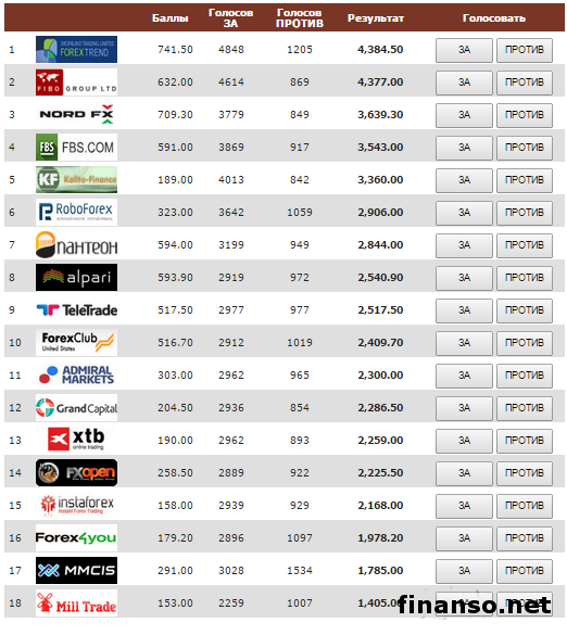 Новую номинацию «Лучшего Форекс-брокера Украины» в рамках постоянно действующей выставки Masterforex-V EXPO открыла в текущем, 2014 г. Академия Masterforex-V. Об этом пишут корреспонденты издания «Украина сегодня: Finanso.net».Среди украинских Форекс-брокеров в рейтинге Masterforex-V EXPO принимают участие восемнадцать компаний, основным условием которого является наличие на территории страны офиса. Учитывая менталитет украинских граждан и их материальные возможности, клиентам предлагаются разнообразные торговые счета, бонусные программы и акции, не сказывающиеся на семейном бюджете клиентов компаний. За последние годы Форекс прочно обосновался на территории Украины, повышая уровень предоставляемого сервиса, развивая прибыльные системы доверительного управления, обучая трейдингу и привлекая на этот рынок новые тысячи его участников, о чем рассказывает издание «Биржевой лидер». Напомним, что место каждой компании определяется на основе профессиональных оценок независимых экспертов и открытого голосования трейдеров, проводимых на сайте Академии Masterforex-V. Самые популярные Форекс-брокеры Украины в октябре 2014 г.По количеству набранных баллов к середине октября 2014 г. Форекс-брокеры Украины расположились следующим образом: 1. Лидирует с результатом 4384,5 балла компания ForexTrend, основанная пять лет тому назад, главной задачей которой было создание выгодных и комфортных условий для своих клиентов. Применяя технологию «сквозной проводки», компания выводит сделки клиентов на лучших поставщиков ликвидности. ForexTrend дважды завоевывала приз «Украинский Финансовый Олимп», а ее центральный офис зарегистрирован в Запорожье. У компании налаженная система вывода средств, широкий выбор финиструментов, наличие сервиса ПАММ 2.0. 2. Второе место с результатом 4377 баллов в середине октября занимает компания FIBO Group, основанная в 1998 г., зарегистрированная на Кипре, с украинским офисом в Киеве и специализирующееся на современных технологиях интернет –трейдинга. Брокер за успехи в своей деятельности имеет ряд престижных наград. Среди достоинств, у компании имеется доступ к технологии ECN, здесь отсутствует ручной дилинг и нерыночные свечи, имеется большое число доступных торговых инструментов. 3. Компания Nord FX, получив 3639,3 балла, занимает третье место, она зарегистрирована с 2008 г. на о. Маврикий. Компания лидирует в различных мировых рейтингах и завоевала ряд престижных наград. Одним из ее основных достоинств является мгновенное исполнение сделок по рыночным котировкам. Ее преимуществом, по мнению экспертов, стало разрешение скальпинга на микро-счетах и фиксированный спред при торговле. 4. На четвертом месте среди Форекс-брокеров Украины оказалась компания FBS, набравшая к этому времени 3543 балла и предоставляющая очень качественный сервис по доступу на Форекс-рынок. Брокер отмечен как самая быстродействующая компания, отмечен за лучшую партнерскую программу и торговую платформу. Основными достоинствами компании, по мнению экспертов, является страхование клиентских депозитов, отсутствие ограничений в торговле и исполнение сделок по лучшим рыночным ценам. 5. С результатом 3360 баллов пятерку лидеров замыкает компания «Калита-Финанс», работающая на Форекс-рынке с 1999 г. и имеющая дочернее предприятие в Украине. ECN-технологии брокера дают возможность мгновенно совершать 