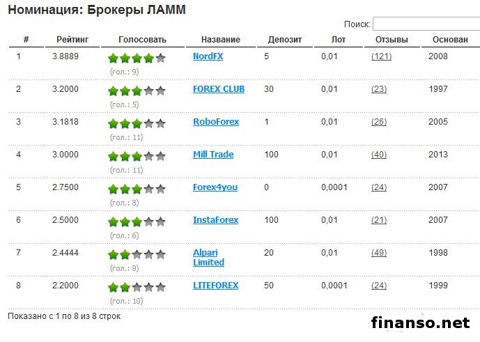 Верный выбор среди большого числа брокеров помогает трейдерам обеспечивать себя эффективной, приносящей прибыль и стабильность работой, хотя начинающих трейдеров поджидает на Форекс-рынке множество неожиданностей и сложностей. Рейтинг и популярность украинских брокеров определяли в октябре 2014 г. журналисты онлайн-издания «Украина сегодня: Finanso.net».Классифицируя работу действующих на рынке компаний по нескольким факторам, тройка лидирующих Форекс-брокеров в октябре устанавливалась по наибольшему количеству набранных баллов в каждой из уже определенных номинаций. Лидирующие на Форексе брокерские компании.Такой инструмент брокеров ПАММ, как ПАММ-счета, в значительной степени облегчает торгующим с этим финиструментом клиентам при передаче средств, распределяя в автоматическом режиме как прибыли, так и потери сторон. Лидируют в октябре в названной номинации Пантеон-Финанс, второй идет Alpari Limited, а на третьем месте оказалась FIBO GROUP. Брокерские компании ECN предоставляют возможность трейдерским ордерам взаимодействовать с ордерами других трейдеров. Взаимодействуя в одной системе, участники процесса в конкретный отрезок времени могут находить самые лучшие предложения для торговли. Между противоположными сторонами, при этом, все ордера перекрываются в реальном времени. Незначительной, как правило, является размер берущейся за эту услугу комиссии. По числу набранных баллов тройка лучших брокеров в названной номинации занимает следующие позиции: 1. FIBO GROUP; 2. Alpari Limited; 3. RoboForex. В автоматическом режиме «отзеркаливая» сделки ЛАММ-брокеров со своими ЛАММ-счетами, распределяя доходы и потери в конце торгового интервала, в это же время вопросы, связанные с копированием сделок, принимает решение сама система у ЛАММ-брокеров. В компетенции управляющих здесь остается определение стратегии ведения торговли. Тройка лидеров представлена здесь так: 1. NordFX; 2. FOREX CLUB; 3. RoboForex. Причиной партнерства для IB, при большом наплыве клиентов Форекс-рынка, стала необходимость в представляющем брокере, выступающего в роли дилингового центра в регионах. Прекрасно справляются с этой задачей в октябре FBS Markets Inc, за ней идет Forex4you, а замыкает тройку лучших Alpari Limited. Микроброкеры являются хорошим вариантом для молодых трейдеров, предоставляя им возможность проводить торговые операции на Форекс –рынке сот стартовым капиталом до 50 долларов, работая с микросчетами. Тройка лучших брокеров в этой номинации в октябре распределилась так: 1. NordFX; 2. Alpari Limited; 3. Forex Trend. Предоставляя услуги с минимальными комиссиями, при покупке или продаже акций работают дисконтные брокеры, где следующим образом представлена лидирующая тройка: 1. FBS Markets Inc; 2. NordFX; 3. FOREX MMCIS group. Бездепозитные брокеры дают возможность трейдерам торговать на Форекс-рынке без внесения собственных средств, предоставляя для этого принадлежащие им деньги. Популярная брокерская компания NordFX успешно работает в этом направлении. Благодаря простоте и надежности в работе с самой распространенной мировой торговой платформой metatrader4, большой популярностью пользуются работающие с ней брокеры МТ4. В октябре 2014 г. лидерами в этой номинации стали: 1. FIBO GROUP; 2. FBS Markets Inc; 3. NordFX. Абсолютным лидером октября 2014 г., набрав наибольшее число баллов, стала компания FIBO GROUP, работающая на принципах открытости, соблюдения действующе