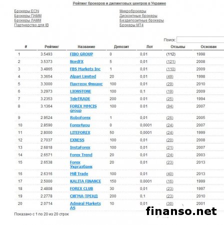 Finanso.net назвал лучших брокеров Украины октября 2014-го: FIBO GROUP, NordFX и FBS Markets IncКатегория: Брокеры