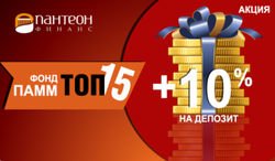 Для инвесторов ПАММ фонда ТОП 15 была продлена акция «+10% на депозит» - «Пантеон-Финанс»Категория: Брокеры