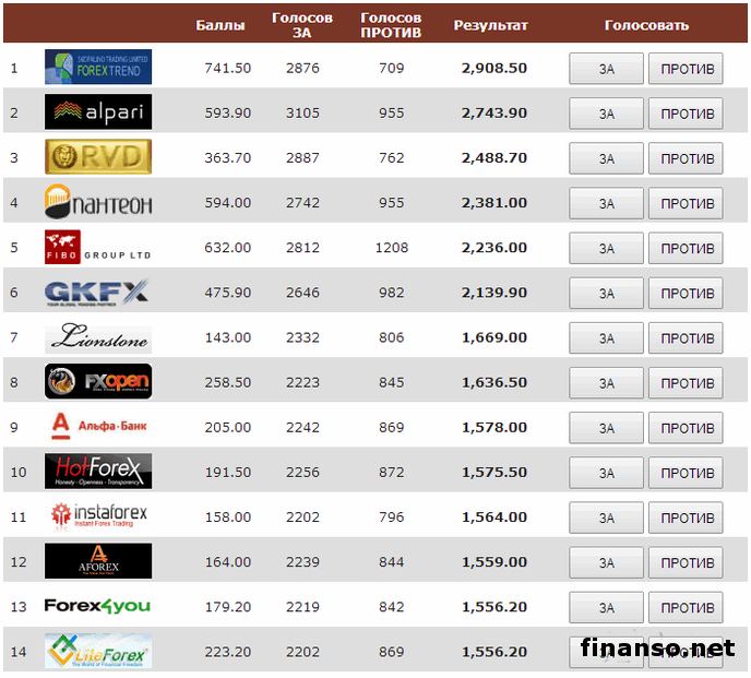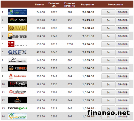В рамках действующей постоянной выставки Masterforex-V EXPO Академия Masterforex-V составляет рейтинг лучших ПАММ-счетов, которые предлагаются как международными, так и отечественными Форекс-брокерами, лидеры которого будут определены после окончания 2014 года. «Однако уже сейчас стали известны промежуточные результаты указанного конкурса за октябрь», - пишут корреспонденты издания «Украина сегодня: Finanso.net».Идеальной формой инвестирования на Форекс-рынке стал ПАММ-сервис, по оценкам экспертов, как для начинающих трейдеров, так и для инвесторов, в силу каких–либо причин не имеющих возможности самостоятельно формировать свой инвестпортфель, совершать прибыльные сделки и постоянно отслеживать ситуацию на рынке, о чем рассказывает издание «Биржевой лидер». Какие брокерские компании лидируют в октябре 2014 года.Верный выбор в пользу того или иного ПАММ-счета, который находится под брендом какого-то брокера, позволяет сделать наличие такого рейтинга, в котором представлены, по мнению экспертов Академии Masterforex-V, четырнадцать известных брокеров финрынка. В зависимости от результатов проходящего голосования участников рынка и оценки качества этих ПАММ-сервисов профессиональными экспертами, в соответствии с числом набранных баллов последовательно распределяются места в этой таблице. Следующим образом складывается этот рейтинг по состоянию на конец октября 2014 г.: 1 – С результатам 2908,5 балла лидирует компания ForexTrend, пять лет работающая на рынке, отличающаяся использованием передовых технологий в интернет-трейдинге, в числе которых и ПАММ-сервис. Важным преимуществом сотрудничества с компанией стало распределение ответственности за сохранение капитала между инвестором и управляющим на ПАММ-счетах, а ПАММ-сервис 2.0 здесь заслуживает особого внимания, как не имеющий аналогов на финрынке. 2 – На втором месте с результатом 2743,9 балла находится компания Alpari, шестнадцать лет работающая в индустрии Форекс и завоевавшая доверие своих клиентов в более чем 150 странах мира. Больше 540 тысяч составляет число зарегистрированных в компании торговых счетов. Легкий и простой способ доступа клиентов к межбанковской ликвидности является отличительной особенностью Alpari. 3 – На третьем месте с 2488,7 набранных балла в конце октября находится компания RVD Markets, запустившая на финрынке в текущем году инновационную платформу Trader с полным STP доступом. По версии MasterForex-V Expo, компания признавалась лучшим STP брокером мира 2013 г. За счет своего сотрудничества с пятью крупнейшими провайдерами, компания обеспечивает клиентов минимально возможным порогом входа на рынок и лучшими ценами на текущий момент. 4 – Компания «Пантеон-Финанс» в октябре занимает четвертое место, набрав 2381 балл. У компании широкий выбор управляющих ПАММ-счетов, а также несколько вариантов ПАММ-сервиса: ПАММ индекс, ПАММ 2.0 и ПАММ. Процесс торговли на ПАММ-счетах любой инвестор может проследить на сайте компании, а аналитиками отмечается полная информация о результатах работы ее ПАММ-управляющих. 5 – Пятое место на данный момент в рейтинге занимает компания FIBO Group с результатом 2236 баллов, работающая на рынке с 1998 г., получившая лицензии авторитетных международных регуляторов и работающая в разных странах мира. Ее официальные представительства открыты в ряде городов РФ. Работу компании отличают полн