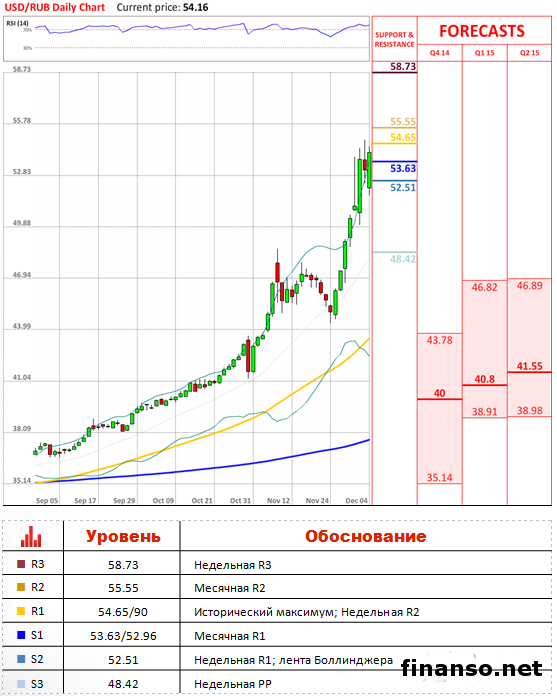 ![]() «В ближайшие дни рубль может подвергаться очередным спекулятивным атакам, особенно если нефть будет снижаться в цене». - ИГ Норд-Капитал (по материалам ИТАР-ТАСС) Обзор В четверг на протяжении торговой сессии американская национальная валюта возобновила восходящий тренд, который в среду сменился на нисходящий. Пара USD/RUB прошла через три важных уровня сопротивления, в том числе недельную и месячную R1, а также линию Боллинджера. Таким образом, валютная пара вплотную приблизилась к недельной R2 на уровне 54.65. Данный уровень также усиливается историческим максимумом на 54.90, хотя не ожидается, что это сможет создать дополнительные трудности для доллара США, чтобы поставить новый рекорд. Но стоит отметить, что в настоящее время индикаторы по всем временным рамкам стали посылать довольно смешанные сигналы по данной валютной паре. Сентимент За последние 24 часа количество длинных позиций по паре USD/RUB незначительно подросло, и сейчас оно составляет 72% из всех (70% вчера). По материалам Dukascopy. |