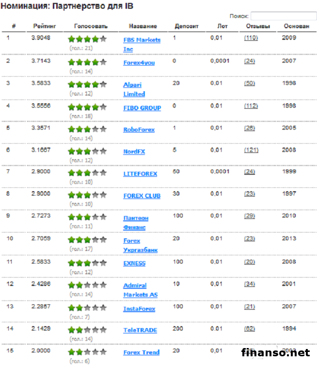 Несмотря на сложности и неожиданности, поджидающие желающих торговать на Форекс-рынке начинающих трейдеров, взвешенный, ответственный и верный выбор среди множества других брокерских компаний дает им возможность добиться стабильности в торговле, одновременно обеспечив себя приносящей прибыль эффективной работой. Оценку деятельности и рейтинг популярности работающих в Украине брокерских компаний в январе 2015 г. определяли журналисты онлайн-издания «Украина сегодня: Finanso.net».Тройка лидирующих в январе Форекс-брокеров определялась по наибольшему числу заработанных компаниями баллов, а по ряду исходных факторов в определенных номинациях оценивалась также работа действующих на финрынке компаний. Лидирующие на Форексе брокерские компании.Защищая интересы своих клиентов, на принципах прозрачности и открытости, эффективно работая в рамках действующего законодательства и набрав по результатам голосования самое высокое число баллов , абсолютным лидером января 2015 г. стала компания FIBO GROUP. Обладая самым разнообразным комплексом торговых инструментов, включая валютные пары и драгметаллы и предоставляя клиентам возможность вкладывать свои средства в счета своих лучших управляющих, второе место занял брокер FBS Markets Inc, обладающий также очень эффективным и надежным инвестсервисом. Оказывая клиентам на Форекс-рынке самые разнообразные и современные инновационные услуги, тройку лидеров замыкает компания NordFX, которая, расширив комплекс своих брокерских услуг, в настоящее время обладает современными программными продуктами. Лучшие Форекс-брокеры за январь 2015 г. по номинациям.При большом числе клиентов на Форекс-рынке возникла необходимость в представляющем брокере, в различных регионах выступающего в качестве дилингового центра, став основой для партнерства IB. Отлично справилась с этой задачей FBS Markets Inc, за ней следует Forex4you, а третьей стала Alpari Limited. Распределяя потери и доходы в конце торговли, у ЛАММ-брокеров во всех вопросах, которые связаны с копированием сделок, итоговое решение принимает сама система, «отзеркаливая» автоматически все проведенные сделки ЛАММ-брокеров со своими ЛАММ-счетами. В компетенции управляющих здесь остается определять принципы ведения стратегии торговли. Тройка лидирующих брокеров в январе представлена в этой номинации такими компаниями: 1. RoboForex; 2. NordFX; 3. FOREX CLUB. В значительной мере облегчает работу клиентов, торгующим на Форекс, в авторежиме распределяя прибыли и потери при передаче финсредств, такой инструмент брокеров ПАММ, как работа с ПАММ-счетами. Лидирует в названной номинации в январе брокер TeleTRADE, компания Пантеон-Финанс идет на втором месте, а третье место занимает Alpari Limited. Предоставляют возможность взаимодействовать с ордерами всех действующих участников рынка и ордерами трейдеров брокерские компании ECN, которые в одной общей системе сотрудничают с участниками рынка, находя в конкретный временной период лучшие предложения для проведения торговой операции. В реальном времени перекрываются между противоположными торгующими сторонами все ордера. Очень незначительной, как правило, является размер снимаемой за эту услугу комиссии. Лучшими брокерам за январь 2014 г. в названной номинации стали: 1. FIBO GROUP; 2. NordFX; 3. LIONSTONE. Для молодых трейдеров отличной возможностью для торговли на финр