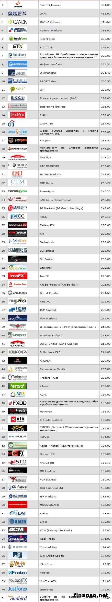 Прекрасным способом дополнительного заработка, по мнению экспертов, став со временем основным, является международный Форекс-рынок. Выбор надежного брокера является одним из важных условий вашего успешного финансового будущего. Анализ рейтинга, составленного Академией трейдинга MasterForex-V и основанного только на непредвзятых и объективных фактах, стал одним из лучших выходов из такого положения. Этим вопросом интересовались корреспонденты издания «Украина сегодня: Finanso.net».Разделенный на три своеобразных блока («Высшая лига», «Вторая лига», «Третья лига») рейтинга Академии, он основывается на не зависящих друг от друга более чем двадцати критериях. В Высшую лигу рейтинга брокеров Академии Masterforex-V попадают компании, набравшие свыше 350 баллов, а остальные, соответственно, во Вторую, и Третью лиги. Об этом рассказывает издание "Биржевой лидер". Вторая лига: результаты голосования трейдеров.Исходя из данных таблицы, видно, что: - на первом месте рейтинга брокеров Форекс Masterforex-V, набрав в настоящее время наибольшее число баллов, находится компания «Финам». Основанная в 2005 г. компания получила европейскую лицензию и является членом Франкфуртской фондовой биржи, став теперь одним из признанных лидеров на международных рынках. В состав международного инвестиционного холдинга «ФИНАМ» входит WhoTrades Ltd., а брокерские услуги этого холдинга оказываются с 1994 г. ; - компании GKFX досталось второе место. Предоставляя доступ клиентам на мировые финрынки, этот бренд объединяет офисы в Греции, Британии, Германии, Голландии и других странах. Прямой выход на финрынки компания предоставляет своим клиентам через GKFX ECN, обладающей такими важными достоинствами, как отсутствие реквот, глубина рынка (Level II ), есть возможность скальпинга, отсутствуют ограничения для выставления ордеров; - брокер «Оранда» замыкает тройку лидеров. Свою деятельность компания осуществляет с 1995 г., используя новейшие технологии для предложения своих услуг торговли на рынке Форекс как для крупных корпораций, фининститутов, так и для частных лиц. Будучи маркетмейкером и надежным источником для торговли валютами, компания предоставляет трейдерам, инвестменеджерам, корпорациям и финансовым институтам прозрачную и гибкую платформу fxTrade. В то же время практически минимальные и нереальные шансы попасть в Высшую лигу рейтинга имеют брокеры «Второй лиги»: - Finotec; - YouTradeFX; - JustForex; - Sunbird. |