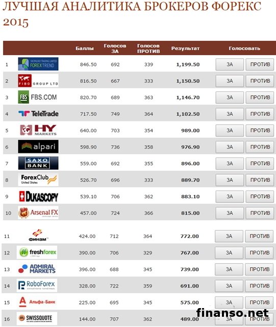 Своевременная и качественная аналитика просто необходима для успешной работы на международном финрынке Форекс. Разнообразные прогнозы, свежие финансовые новости публикуют все уважающие себя форекс-брокеры. Об этом пишут корреспонденты издания «Украина сегодня: Finanso.net».К основной аналитике следует отнести информацию о наиболее важных событиях в финансовых новостях, регулярно проводимые технический (о прогнозах четырех основных валютных пар - EUR/USD, USD/JPY, GBP/USD и USD/CHF) и волновой анализ (по этим же парам). Принимать верные решения новичкам помогают ежедневные торговые сигналы, понятные даже без знаний основ аналитики. Хорошим аналитическим инструментом для планирования своей торговли является публикуемый экономический календарь, а также календарь праздников. Действующие процентные ставки, публикуемые регулярно на страницах изданий, отображают состояние экономики страны, а влияние того или иного финансового показателя трейдер может определить, используя экономические индикаторы. Необходимо очень постараться для того, чтобы выбрать для сотрудничества брокера с хорошей аналитикой. В этом отношении действенную помощь оказывает рейтинг, составленный Академией трейдинга MasterForex-V, основанный на независимых друг от друга параметрах. Об этом рассказывает издание «Биржевой лидер». Рейтинг брокеров с лучшей аналитикой.Исходя из данных таблицы видно, что: - компания ForexTrend стала в настоящее время лидером этого рейтинга, набрав наибольшее число баллов – 1199,50. Работая на рынке с 2009 г., компания использует технологию «сквозной проводки» и применяет No Dealing Desk, позволяющие вести торговлю по котировкам крупнейших международных банков. В г. Днепропетровске расположен главный офис компании, а брокер имеет также партнерским соглашением с популярной среди трейдеров Skopalino trading limited, отличающейся своей надежностью; - набравшей 1150,50 балла, компании FIBO Group досталось второе место. В этот холдинг в настоящее время входит зарегистрированная на Кипре FIBO Group Holdings, Ltd. и компания FIBO Group, Ltd. - зарегистрированная в юрисдикции Британских Виргинских островов. Весь комплекс услуг интернет-трейдинга, в том числе на рынках FOREX и CFD холдинг может предлагать холдинг благодаря этому факту. - Компания FBS, набравшая 1146,7 балла, замыкает тройку лидеров этого рейтинга. Предоставляя финансовые и инвестиционные услуги высокого качества по всему миру, эта компания своим приоритетом считает сервисное обеспечение трейдеров самого высокого уровня. FBS, будучи одним из лидеров фининдустрии, в числе первых включилась в pro-rebate.com (систему возврата части спреда, с участием канадской корпорации EUTA Capital, воспользовавшись которым каждый клиент управляющей компании может получать значительные прибыли за счет экономии на существующих у брокеров спредах и комиссиях). Следующим образом расположились последующие участники рейтинга: - TeleTrade; - HY Capital Markets; - Alpari; - Saxo Bank; - FOREX CLUB; - Dukascopy Bank SA; - Arsenal-FX; - Finam; - FreshForex; - Admiral Markets; - RoboForex; - Альфа Форекс; - Swissquote Bank SA. |