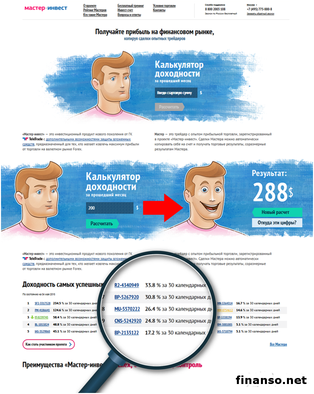 На данный момент работать на рынке валют Форекс может каждый желающий. Даже без знаний в финансовой области, наличия большого стартового капитала. Подробностями интересовались корреспонденты издания «Украина сегодня: Finanso.net».Этому способствуют по большей части два фактора: торговая площадка – самая большая в мире по ежесуточным оборотам средств и, как итог, быстро развивающаяся. А второй фактор порождает инновационные технологии: растущий комфорт, безопасность и надежность трейдинга вместе с ростом размеров извлекаемых доходов. «Новый» Форекс – зарабатывай и не веди торги.Однако на этом развитие инструментов для торговли не остановилось. Можно получить доход даже без самой торговли. Точнее говоря, благодаря совместным инвестициям с опытными трейдерами. Теми, кто, по сути, обладает опытом, профессиональными навыками работы, принося пассивные заработки с каждой успешно проведенной сделки. Есть несколько вариантов сотрудничества трейдера и инвестора – от известной модели ПАММ-счетов, коллективного управления у разных брокеров до непосредственной возможности смешанного управления личными финансами совместно инвестором и трейдером, как, к примеру, в проекте «Мастер-Инвест» одного из лидеров индустрии – брокера TeleTrade. Кроме того, в данном вопросе удобными представляются биржи трейдеров – онлайн-площадки, где сами инвесторы могут выбрать наиболее подходящего трейдера по разным критериям (от срока работы, объемов прибыли до используемых торговых стратегий), получать доход благодаря его торговле. В то же время трейдеры, давая доступ к реальным данным личной торговой истории, могут привлечь новые средства и так поднять размеры извлекаемых доходов. Журналисты портала «Биржевого лидера» исследовали предложения, чтобы понять: где удобнее и лучше инвестору искать трейдера? Способы инвестирования:1. Инвестиции в коллектив. Инвестор дает средства нескольким трейдерам, формируя таким образом инвестиционный портфель. Итоги торговли этих трейдеров составляют общую прибыльность инвестора. Преимущество – компенсирование просадки одного конкретного трейдера за счет доходности коллектива в общем. 2. Индивидуальное сотрудничество. Инвестор работает только с одним трейдером. ПАММ-счет – счет, куда инвестируются средства разных инвесторов для управления одним трейдером. Преимущество в следующем: ПАММ-счета предоставляют полную статистику работы трейдера в полностью открытом доступе. 3. Смешанное управление счетом. Эксперт из Канады Евгений Ольховский отмечает: Многие брокеры, биржи предлагают обычные варианты инвестирования без гарантий надежности вкладов самому инвестору. «Биржа трейдеров» имеет другой подход. Интернет-площадка существует с 2014 года. Но за счет надежности, эффективности, высокого уровня комфорта она завоевала доверие сотен тысяч трейдеров и инвесторов со всего мира. |