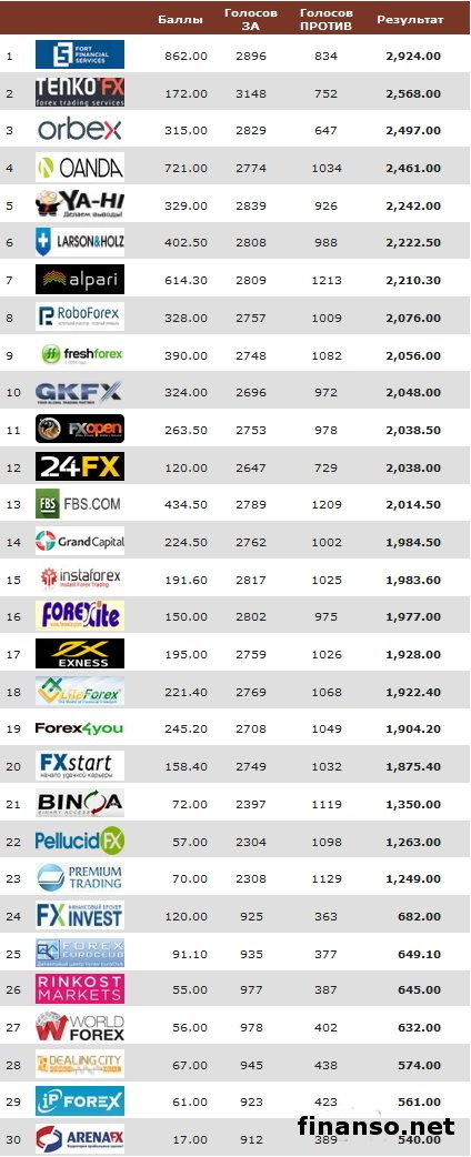 В карьере трейдера всегда есть период, когда для продолжения работы нужно выбрать себе партнера, хорошего, самого лучшего брокера. Это выбор крайне важный, но при этом и сложный. И все же есть действенные способы решения этой проблемы. Эксперты советуют начинающим трейдерам обращать основное внимание на рейтинг от специалистов Академии Masterforex-V. Подробностями интересовались корреспонденты информационно-аналитического издания по экономике и рынку Форекс «Украина сегодня: Finanso.net». Лучший Форекс-брокер мира для начинающих трейдеров в 2015 году.Из данных таблицы видно, что: Первое лидерское место на этот раз по праву отвоевал брокер Fort Financial Services. Эта брокерская компания основана несколько лет назад. За это время было решено, что ключевой акцент деятельности будет направлен на дополнение качественных услуг брокера отдельным рядом сопутствующих сервисов, которые призваны понять уровень эффективности работы не только профессионалов, но и начинающих трейдеров. Брокер TradeFort стал настоящим пионером в развитии подобной концепции. Как рассказывают журналисты издания «Биржевой лидер», успех брокеру принесли такие сервисы, как автоматическое уведомление трейдеров по поводу приближения к уровню MarginCall, ведение истории экспираций фьючерсных договоров, спецсчета для новичков с хеджированием доли позиций благодаря компании, бесплатные VPS для клиентов, которые ведут торговлю с применением автоматических советников торговли. Второе место на этот раз досталось по праву брокер TenkoFX. Главный приоритет деятельности этого брокера заключается в его клиентах, и, безусловно, партнерах. Первоочередная задача брокера – удовлетворение потребностей, пожеланий каждого клиента/партнера, независимо от его предпочтений. Опытная команда профессионалов каждый день трудится над тем, чтобы превратить трейдерскую деятельность на финансовых рынках в прибыльный и стабильный бизнес, обеспечить условия для долгосрочного и выгодного сотрудничества с каждым партнером и клиентом. Третье место – брокерская компания Orbex. Этот брокер создан пять лет назад. Компания занимается предоставлением услуг инвестиций в областях валют, драгметаллов, CFD, сырья, фьючерсов. Брокер Orbexпредставляет огромный выбор инструментов торговли, отличается надежностью инвестиций. Минимальный стартовый вклад – 500 долларов. Далее участники располагаются в рейтинге таким образом: - OANDA; - YA-HI.com; - RoboForex; - Larson&Holz; - Alpari Limited; - FreshForex; - GKFX; - GrandCapital; - FXOpen; - 24FX; - FBS MarketsInc.; - Forexite; - LiteForex; - InstaForex; - EXNESS; - Forex4you; - FX Start; - PremiumTrading; - Binoa; - Pellucid FX; - FX-Invest; - Forex EuroClub; - Dealingcity; - RinkostMarkets; - WorldForex; - Arena FX; - iPForex. |