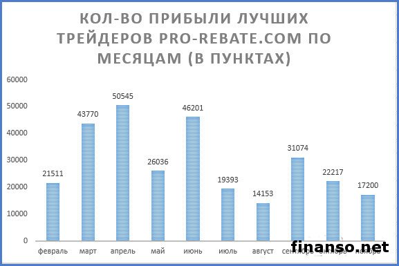 К концу нового месяца работы инновационного проекта «Автотрейдинг про-ребейт» журналисты издания «Биржевой лидер» встретились с главой проекта Евгением Ольховским. Евгений Ольховский рассказывает о том, что общий рост мировых финансовых индексов типа S&P 500, Dow Jones, Nikkei 225 и остальных в прошлом месяце приостановил восстановление позиций, проведя основную часть времени во флете. При этом нефтяной фьючерс и дальше показывает незначительное падение, которое способно добавить сложностей к торговле трейдеров. Подробностями интересовались корреспонденты издания «Украина сегодня: Finanso.net». По сообщениям портала по экономике «Биржевой лидер», таким образом на протяжении прошлого месяца трейдеры проекта pro-rebate.com получили: Общее число дохода в пунктах - 17200, из них: ВИП-счета получили 5210 пунктов (что составляет примерно 30,29 процента, от общего объема пунктов); С 1 по 10 места = 2581 пункт (15,01 процента); С 11 до 20 места = 2502 пункта профита (14,55 процента); С 21 до 30 места = 1065 пунктов прибыли (6,19 процента); С 31 до 45 места = 5842 пункта дохода (33,97 процента). Евгений Ольховский также говорит о том, что уже с нынешнего месяца «мы будет стараться расширять охват все время торгующих трейдеров, дав путь основному числу трейдеров, что не могло не отразиться на части ВИП-счетов. Несмотря на то что доходность торговли сохраняется на завышенном уровне, по общему числу полученных пунктов дохода они находятся не на первой позиции». Таким образом, если ВИП-счета получили 5210 пунктов дохода, то счета с 31 до 41 места получили 5842 пункта. Тем не менее высокая осторожность в торговле у последних не дает им достичь лучших итогов. За ноябрь текущего года таблица ВИП-счетов самых лучших трейдеров pro-rebate.com выглядит следующим образом: Главная таблица трейдеров pro-rebate.com за ноябрь презентована в специальной таблице: «Общее количество брокеров, у которых открываются счета нашими лучшими 60 трейдерами сайта pro-rebate.com, осталось неизменным – четыре привычные компании, которые занимают ТОП-5 рейтинга брокерских компаний MasterForex-V», – отмечает Евгений. В настоящее время ТОП-60 счетов распределились по брокерам таким образом: - часть брокеров NordFX снизилась, составляет 57 процентов от общего числа брокерских компаний; - на второй позиции по числу счетов остается брокерская компания «FBS», хотя его часть возросла от 21 до 27 процентов; - брокер «FortFS» занимает 3 место, а его часть выросла до 13 с 8 процентов счетов; - на четвертой позиции брокер «Larson&Holz» сменила брокера «FIBO Group». |