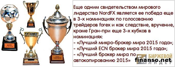 В конце каждого нового года один из основных выставочных проектов индустрии валютного рынка Форекс Мастерфорекс определяет ТОП- брокеров. За счет проведения специального голосования трейдеров, независимых экспертов, представителей ректората проходит так называемый «отбор» самых лучших в разных номинация, которым в результате вручаются оригинальные награды – Кубки Мастерфорекс Экспо. Подробностями интересовались корреспонденты информационно-аналитического издания «Украина сегодня: Finanso.net».Как стало известно журналистам информационно-аналитического издания по экономике и предпринимательству «Биржевой лидер», именно за счет подобного подхода (совместного голосования непосредственных потребителей услуг рынка Форекс и специалистов) можно в итоге достичь максимальной объективности в вопросе определения ТОП-компаний по качеству, безопасности, надежности, привлекательности инвестиционных и торговых условий брокерских компаний. Помимо прочего в основу рейтинга закладывается порядка двух десятков независящих друг от друга критериев, которые дают возможность всесторонне и абсолютно непредвзято оценивать деятельность одного или другого брокера. К примеру, речь идет о размере спредов, комиссий, наличии, отсутствия реквот, проскальзываний, скорости выполнения ордеров, оперативность и точность подачи котировок, которые предлагают обучающие и бонусные программы, число открытых офисов, наличие лицензий, срок работы на рынке и так далее. Лучший микро-брокер 2015 – Норд ФХ.Все это в конечном результате, определяет ТОП- брокеров по разным номинациям. А по результатам этого года в номинации «Лучший микро-брокер мира 2015» с серьезным отрывом от своих ближайших преследователей победу одержала брокер-компания Норд ФХ. Кроме всего прочего, для нее это стало уже четвертым кряду завоеванным званием, очередным Кубком данной номинации. А это говорит о стабильно высоком качестве предлагаемых условий, продуктов и сервисов в сфере торговли на микро-счетах. Важно отметить: брокер Норд ФХ завоевал и ключевой трофей – Кубок «Лучший брокер 2015 года», и стал лауреатом в двух иных номинациях: – «Лучший брокер мира в сфере автокопирования 2015 года»; – «Лучший ECN брокер 2015 года». Ведя речь о микро-счетах, одних из основных для работы начинающих трейдеров, специалисты отмечают: брокер Норд ФХ заслуженно считается лидером в этом рабочем направлении на рынке валют Форекс. Брокеру удалось сформировать не просто наиболее привлекательные условия с низким уровнем издержек и рисков, но и все время развивать свои технологии и сервисы, улучшая для новичков реальные возможности вести продажи эффективно и стабильно. |