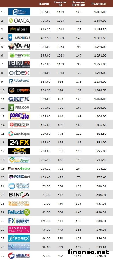 ![]() Каждый отдельно взятый трейдер до начала своей работы на валютном рынке Форекс обязан произвести выбор брокерской компании, с которой планирует вести тесное сотрудничество в будущем. В то же время нельзя забывать: хоть все брокерские компании, по своей сути, предлагают совершенно одинаковые условия для активного сотрудничества, в реальности они часто сильно друг от друга отличаются. Подробностями интересовались корреспонденты информационно-аналитического издания «Украина сегодня: Finanso.net».Как стало известно журналистам информационно-аналитического издания по экономике и предпринимательству «Биржевой лидер», помимо этого, крайне важно понимать: до выбора брокера трейдер знает, какие параметры интересуют его больше всего. Исходя из этого, делая выбор, он опирается только на них. Параллельно с этим, к большому сожалению, большая часть брокерских компаний не обращает никакого внимания на все иные параметры, предложения и услуги, которые в то же время предоставляет компания-брокер. Именно это и считается основной причиной того, что до ныне в мире не была еще придумана схема, пройдя по которой можно произвести на самом деле правильный выбор брокерской компании. Эксперты советуют неопытным трейдерам обращать основное внимание на рейтинг, который формировался специалистами Академии Мастерфорекс-V. За счет этого рейтинга каждый трейдер может понять, какой брокер Форекс на данный момент считается надежным и перспективным и, помимо прочего, предоставляет лучшие условия сотрудничества. Лучший брокер мира для неопытных трейдеров в 2016 году:- первое почетное место отдано по праву брокерской компании Fort Financial Services. Это компания, работающая на международном рынке с 2010 года. Брокер сделал акцент в работе на идеальный сервис, который, помимо прочего, дополняется разными сопутствующими услугами; - вторая позиция отдана брокерской компании OANDA, работающей на рынке валют последние лет 20 лет, с 1995 года. В своей деятельности брокер использует передовые технологии для предложения своих услуг торговли на валютном рынке Форекс; - третье место отдано по праву брокеру-компании Alpari Limited, которая начала работу в 1998 году. На данный момент времени брокер работает в 150 государствах мира, имеет официальных партнеров в 40 государствах мира. Далее следуют: - Larson&Holz; - FreshForex; - YA-HI.com; - TenkoFX; - RoboForex; - ORBEX LTD; - FXOpen; - FBS Markets Inc.; - GKFX; - Forexite; - Grand Capital; - InstaForex (Инстафорекс); - 24FX; - LiteForex; - EXNESS (Экснесс); - Forex4you; - Premium Trading; - ForexStart; - Binoa; - Pellucid FX; - Dealingcity; - FX-Invest; - iP Forex; - Rinkost Markets; - Forex EuroClub; - Arena FX. |