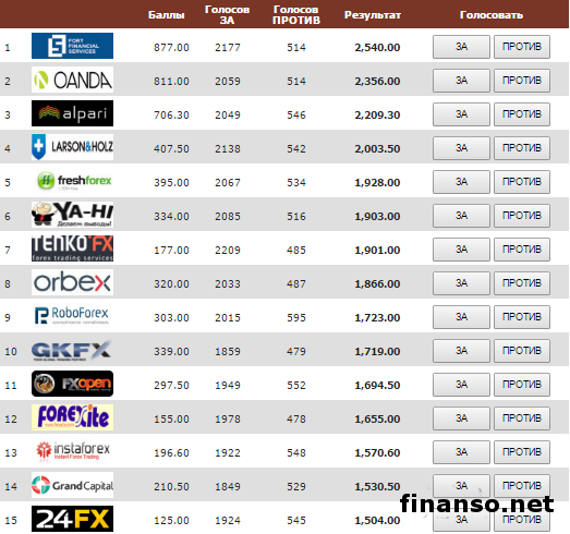 Что собой представляет компания-брокер для неопытных трейдеров? Это брокер, который всеми своими силами пытается поддержать новичка не только в его стремлении заработать на , но и в обретении всех столь важных знаний, чтобы в результате им под силу было отправиться в свободное плавание, получать реально хорошие доходы. Такие брокеры стараются научить человека, который хотел бы трудиться на рынке валют Форекс, на самом деле, всему, что для этого может понадобиться. Однако, к большому сожалению, не всем трейдерам это под силу. Подробностями интересовались корреспонденты информационно-аналитического издания «Украина сегодня: Finanso.net».Как стало известно журналистам информационно-аналитического издания по экономике и предпринимательству «Биржевой лидер», проблема в том, что на данный момент времени на валютном рынке Форекс можно с легкостью встретить множество трейдеров, которые в период ведения собственной деятельности совершают много ошибок, присущих новичкам. И все-таки не все они являются таковыми. Это происходит, так как отдельно взятые трейдеры не только не могут, но еще и не хотят учиться, в торговле полагаясь исключительно на случай и собственную удачу. Таким трейдерам даже не светит стать успешными, получать реально большие доходы. При этом трейдеры, которые недавно пришли на рынок, больше похожи на волчат среди стаи вполне зрелых и более опытных волков. Они явно сильно боятся, все время совершают ошибки, падают, спотыкаются, теряют финансы. Тем не менее готовы снова и снова подниматься и идти дальше. И это все происходит не без непосредственного участия более опытных волков и так называемого главаря стаи, то есть брокера. Именно от этой компании прямо зависит, как быстро новичок-трейдер, желающий стать профессионалом, обучится всему, что необходимо для ведения правильной, а самое главное, доходной работы на валютном рынке. В компаниях, которые максимально качественно учат новичков, хорошо понимают, что им нужно для карьерного роста, какие ошибки новички часто совершают с момента восхождения на вершину. В номинацию на ТОП-брокеров для неопытных трейдеров вошли брокеры, числящиеся в самом авторитетном международном е брокеров рынка валют Форекс от Академии Мастерфорекс-V. По таблице видны результаты голосования. Лучший брокер мира для неопытных трейдеров.1. Первое место – за брокером Fort Financial Services; 2. Второе место – за брокерской компанией OANDA; 3. Третье место – за брокером Alpari Limited. Далее следуют: - YA-HI.com; - Larson&Holz; - FreshForex; - TenkoFX; - GKFX; - ORBEX LTD; - RoboForex; - FXOpen; - Forexite; - 24FX; - InstaForex (Инстафорекс); - Grand Capital; - EXNESS (Экснесс); - Forex4you; - FBS Markets Inc.; - LiteForex; - ForexStart; - Binoa; - Rinkost Markets; - FX-Invest; - Dealingcity; - Premium Trading; - iP Forex; - Pellucid FX; - Forex EuroClub; - Arena FX. |
