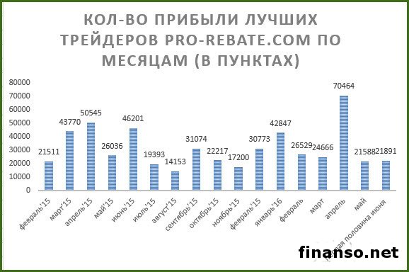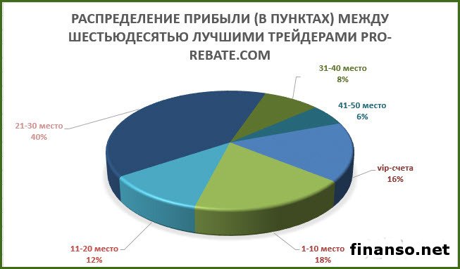 В начале нынешнего лета 2016 журналисты обратились к руководителю проекта Авто-трейдинг проребейт Евгению Ольховскому, чтобы он рассказал о промежуточных результатах первого летнего месяца. Подробностями интересовались корреспонденты информационно-аналитического издания «Украина сегодня: Finanso.net».Журналисты информационно-аналитического издания по экономике и предпринимательству «Биржевой лидер» отмечают: «Лето – это пора отпусков. Но можно ли его назвать периодом, когда снижается общий уровень трейдерской активности проекта?» Как рассказывает Евгений Ольховский, даже несмотря на летний период, первые дни продемонстрировали, что трейдеры после майских праздничных дней решили отработать доход, упущенный в минувшем месяце, и за первые полмесяца показали результат, который выше, чем за май в целом: Общий доход в пунктах от 60 лучших трейдеров равен 21 891:Также эксперт отмечает, что для понимания того, каким именно образом распределяются доходные счета, мы выделяем такие группы денежных счетов: • ВИП-счета продемонстрировали 3 531 пункт дохода (равно 16,13 процента, от общего числа пунктов, что заработали ТОП-60 трейдеров ); • с 1 по 10 место дали 4 050 пунктов дохода (или около 18,5 процента); • с 11 по 20 место получили 2 565 пунктов профита (или примерно 11,72 процента); • с 21 по 30 место равно 8 648 пунктов дохода (39,5 процента); • с 31 по 40 место равно 1836 пунктов профита (или около 8,39 процента); • с 41 по 50 место равно 1261 пункт профита (или порядка 5,76 процента). Также эксперт отмечает, что самое большое число доходов в пунктах смогли дать за последние пару недель денежные счета, которые занимают 21-30 позиции – 39,5 процента. ВИП-счета, счета, которые заняли 1-10 место в рейтинге получили приблизительно одинаковое число пунктов дохода – 16,13 процента и 18,5 процента соответственно. Сразу после них располагаются счета 11-20 места с 11,72 процента дохода. И последние позиции достались 31-40 и 41-50 место с 8,39 процента и 5,76 процента дохода соответственно. Обновленная таблица с ВИП-счетами объективно лучших трейдеров сайта pro-rebate.com за первые пару недель месяца выглядит таким образом: Главная таблица ТОП-трейдеров сайта pro-rebate.com в начале месяца выглядит так: |