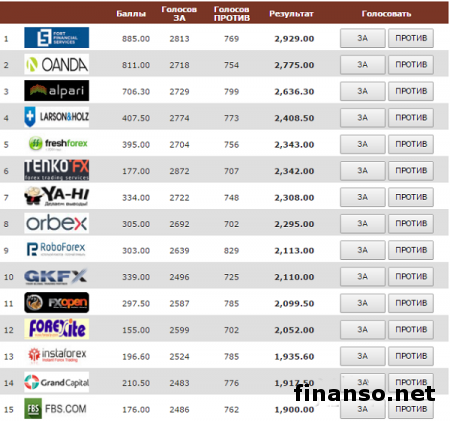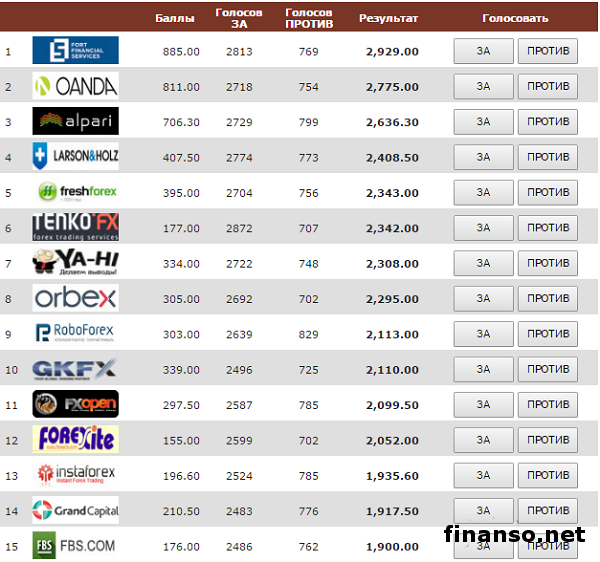 Деятельность трейдера без активного сотрудничества с брокерской компанией на рынке валют каждый трейдер, перед тем как начать торги на рынке валют Форекс, изначально обязан провести выбор брокера-компаньона, от которого, скорее всего, в будущем зависит его судьба на рынке. Кроме того, большая часть людей, в числе коих и трейдеры, уверены: компании-брокеры, по сути, почти ничем не отличаются друг от друга, потому что они ведут одинаковую деятельность, а также предоставляют одинаковые услуги. Подробностями интересовались корреспонденты информационно-аналитического издания «Украина сегодня: Finanso.net».Как отмечают журналисты «Биржевого лидера», в реальности проблема в том, что каждый из брокеров обладает своей личной индивидуальностью, своими целями и предпочтениями. Если вникнуть в данный вопрос, можно заметить те отличия, что помогут трейдеру разобраться: с какой компанией стоит иметь дело, а с кем лучше вообще не общаться. В номинацию на самого лучшего брокера для неопытных трейдеров вошли компании, которые уже числятся в самом авторитетном на данный момент времени международном рейтинге брокерских компаний Академии Masterforex-V. По данным из презентованной таблицы понятно: в номинации берутся в учет баллы этого рейтинга (у брокера Fort Financial Services 885,0 баллов, у брокера OANDA (Оанда) 811 баллов и так далее), итоги голосования представлены на странице лучшего брокера мира для неопытных трейдеров. Лучший Форекс-брокер мира для начинающих трейдеров в 2016 году.ервое место за брокерской компанией Fort Financial Services; - Второе место сохранено за брокерской компанией OANDA; - Третье место рейтинга в минувшем месяце по праву досталось брокерской компании Alpari Limited. Далее следуют: - Larson&Holz; - YA-HI.com; - FreshForex; - TenkoFX; - ORBEX LTD; - FXOpen; - RoboForex; - Grand Capital; - GKFX; - Forexite; - InstaForex (Инстафорекс); - LiteForex; - 24FX; - EXNESS (Экснесс); - Forex4you; - Binoa; - ForexStart; - Dealingcity; - Premium Trading; - FX-Invest; - iP Forex; - Arena FX; - Rinkost Markets; - Pellucid FX; - Forex EuroClub; - FBS Markets Inc. |