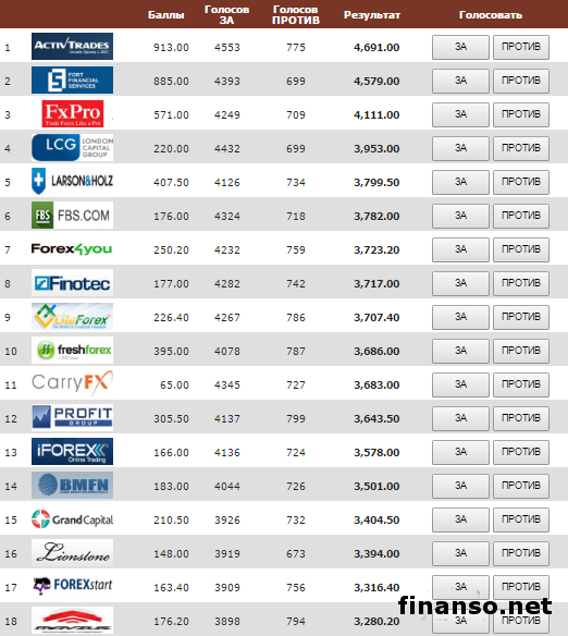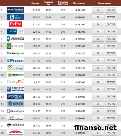 CFD – особые соглашения на разницу цен, которые считаются определенной разновидностью деривативных инструментов торговли. Часто трейдеры применяют их с целью проведения ценового движения у подлежащих финансовых инструментов, которыми часто выступают акции, индексы, облигации и так далее.Специалисты сайта «Биржевой лидер» отмечают тот простой факт, что аналитики Международного рынка валют принимают CFD в качестве контрактов на разницу цен. А все благодаря тому, что они характеризуются наличием большого числа преимуществ перед остальными конкурентами. А самое важное преимущество появляется у трейдера – возможность избежать каких-либо дополнительных затрат. Нельзя ни в коем случае забывать, что контракты на ценовую разницу в период диверсифицирования портфелей предоставляют трейдерам хорошую поддержку. Этот результат чаще всего достигается за счет ведения торговли на разных рынках. Абсолютное большинство брокеров, которые ведут работу на рынке валют международного уровня Форекс, предлагает трейдерам договоры на ценовую разницу параллельно с валютной торговлей. Исходя из этого, трейдер получает отличную возможность вести торговлю и тем, и другим на едином общем денежном счете. Преимущества CFD: - возможность вести продажи CFD на платформе брокерской компании, не открывая отдельный денежный счет; - возможность применять CFD с целью хеджирования; - использование кредитного плеча; - возможность получать прибыль на покупке, и на продаже; - лучшая прогнозируемость передвижения котировок; - обычные правила по заключению сделок; - большая прибыльность. Рейтинг брокеров для торговли CFD.В номинацию вошли брокерские компании из самого авторитетного на данный момент времени международного рейтинга брокеров Академии Masterforex-V. ПО продемонстрированной таблице видно, что в номинации учтены баллы рейтинга (у брокера ActivTrades – 913 баллов, у брокера Fort Financial Services – 885 и так далее), а также итоги проведенного голосования на странице объективно лучшего брокера, который предоставляет отличные условия для торговли CFD. Как видим: - первое место за брокером ActivTrades; - второе место за брокером Fort Financial Services; - третье место за брокером FxPro. Далее располагаются брокеры: - London Capital Group; - Forex4you; - Larson&Holz; - FBS Markets Inc.; - Finotec; - CarryFX; - LiteForex; - FreshForex; - PROFIT Group Inc; - iFOREX; - Lionstone Investment; - BMFN; - Grand Capital; - ForexStart; - MAYZUS. |