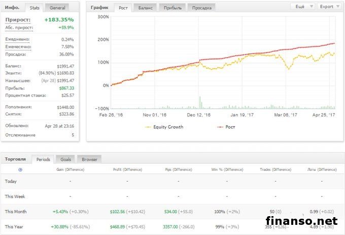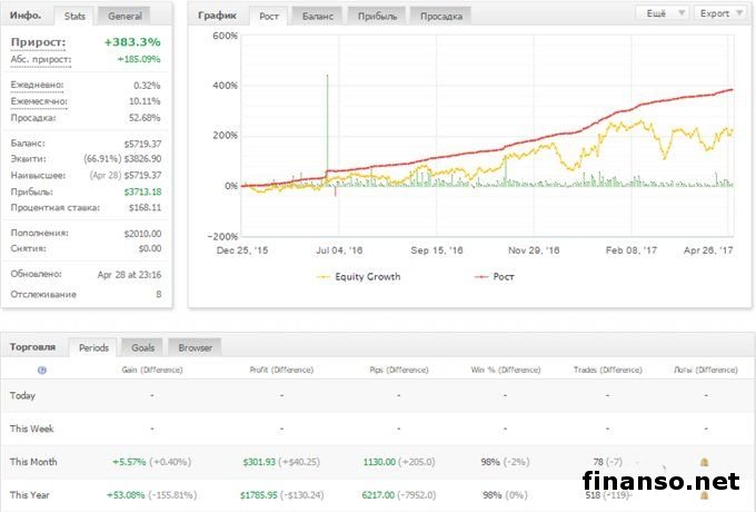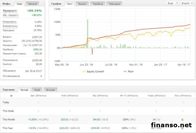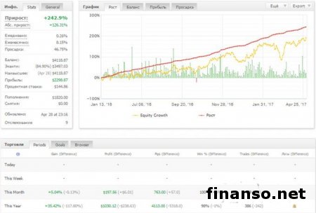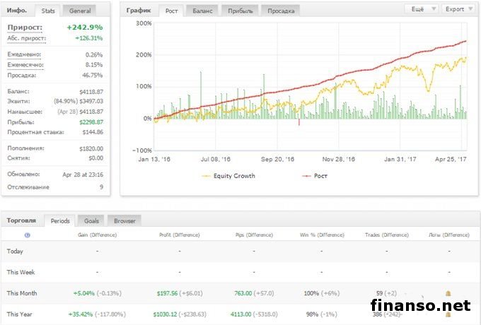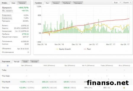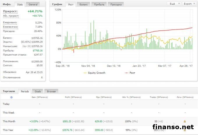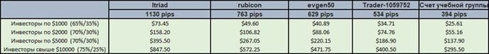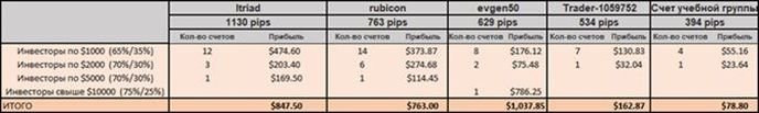 Как передают корреспонденты "Украина сегодня: Finanso.net", стратегия, которую использует Академия Masteforex-V, продолжает приносить прибыль трейдерам и инвесторам. Особенность таких депозитов трейдеров Masterforex-V – стопроцентная гарантия их беспроигрышности, базирующаяся на методике беспроигрышных Форекс-счетов Masterforex-V (подробности в главе книги 4 - "Беспроигрышные счета трейдеров от Masterforex-V и их стратегии"). Беспроигрышные счета Форекс, без нарушения манименеджмента и мартингейла, с мониторингом на независимом ресурсе myfxbook.com, действительно существуют, и их можно копировать на сервисе автокопирования pro-rebate.com. Счета VIP-трейдеров даже через 2 года не слиты и приносят регулярный доход.Итоги VIP-трейдеров Masterforex-V в апреле? Трейдер Академии под ником Itriad занял 1 место, заработав 1130 пунктов в апреле. Прирост депозита - 5,57% (301,93 доллара). Депозит трейдера увеличился до 5,7 тыс. долларов США: Вторую позицию в апреле занял трейдер rubicon с 763 пунктами дохода. Прирост депозита +5,04%. Прибыль составляет 197,56 доллара. Депозит увеличился до 4,1 тыс. долларов, что дает ему возможность торговать 0,4 лота: Третье место занимает трейдер evgen50 с доходом в 629 пунктов, продемонстрировав прирост депозита на +3,03%. Трейдер торгует 0,1 лота при депозите свыше 19 000 долларов, поэтому его прибыль в апреле 2017 года составила 581,25 доллара: Четвертое место занимает трейдер с ником Trader-1059752, заработавший за месяц 534 пункта дохода, что составило прирост депозита в +5,43%. Трейдер торгует депозитом почти в 2000 долларов, но пока лотом 0,01, поэтому его доход составил 102,56 доллара: Пятое место демонстрирует счет учебной группы факультета ТС МФ. Доход этого счета в апреле составил 394 пункта с приростом депозита на 2,83%. Баланс – почти 2 тыс. долларов, но пока торговля идет 0,01 лота. Доход за месяц составил 53,02 доллара: Сколько заработали трейдеры, управляющие счетами инвесторов? По статистике pro-rebate.com, трейдеры Академии Masterforex-V от своих инвесторов получили от 78 до 1000 долларов дохода. Такая разница зависит от числа пунктов, заработанных каждым трейдером, и объема инвестиций у каждого трейдера по отдельности. Таблица демонстрирует, как трейдеру сделать свой доход до 5 раз больше без нарушения мартингейла и манименеджмента, торгуя на собственном счету и привычным лотом: ![]() Какой доход получили инвесторы, копируя сделки VIP-трейдеров? Доход инвесторов зависит от количества пунктов, заработанных трейдерами и от суммы инвестирования. Так, при инвестировании 1 тысячи долларов инвестор получает 65% дохода, что у разных трейдеров за месяц составляло 25-73 доллара дохода в месяц, а при инвестировании 10 тысяч долларов инвестор получает 75% дохода, что при подключении к автокопированию VIP-трейдеров составило 295-847 долларов прибыли. |