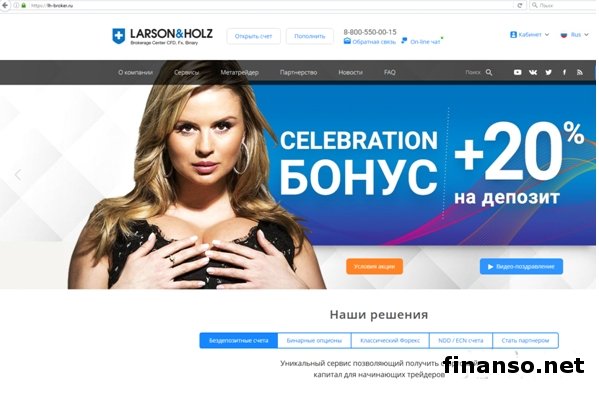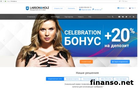 При этом для объективной оценки следует ознакомиться с перечнем предоставляемых брокерской компанией услуг, бонусной системой и рядом других нюансов ее работы. Деятельность компании Larson&Holz IT Ltd можно условно разделить на несколько основных направлений: - компания в своей деятельности выступает как Форекс – брокер и брокер бинарных опционов (акции, сырье, валюты). Можно также торговать опционно , используя платформу Metatrader и ее виртуальный аналог от Larson&Holz; - от компании есть предложения для различных партнерских программ. Это агентские представительства в разных регионах и онлайн – партнерство. У брокера с недавних пор есть спецпредложение от Call-центров, специализирующихся на обслуживании брокерских компаний. У Larson&Holz множество разнообразных бонусных программ.Брокер предлагает своим клиентам много разнообразных бонусных программ для клиентов с различными вкусами и потребностями. При этом, профильными специалистами отмечаются следующие из них: - DepojetBonus – это самая долговременная от ЛарсонХольц программа. Клиентам в рамках этого предложения начисляется дополнительно от 10 до 20 процентов от суммы, размещенной на депозите. Ее возможностями могут воспользоваться владельцы новых счетов или клиенты, пополняющие депозит на сумму не менее 5 тыс долларов; - в рамках CommissionBonus компания компенсирует комиссию, снимаемую банком клиента или банком – корреспондентом при пополнении торгового аккаунта пластиковой картой. Бонус актуален для всех типов счетов; - конкурс – рейтинг Larson&Holz. Эта программа действует уже на протяжении многих лет. Среди реальных счетов ежемесячно разыгрываются призы на сумму 10-15 тыс долларов. По итогам лучших результатов работы за месяц около 150 трейдеров по этой программе получает призы на свои торговые счета до 1000 долларов. При этом в конкурсе без соответствующей регистрации могут автоматически принимать участие все счета на сумму более 100 долларов. - NonDepositBonus. Ларсон энд Хольц по этой программе для первоначальной торговли без вложений предоставляет 100 долларов. Этот бонус позволяет трейдерам пробовать свои силы в реальной торговле без минимального риса потери средств. В Larson&Holz минимальным является счет в 250 долларов, кредитное плечо – до 1:500. Названные условия можно в целом назвать приятными и выгодными. Набор инструментов для торговли , предлагаемый брокером, опытные трейдеры считают также неплохим. Однако некоторые клиенты, несмотря на привлекательные условия торговли в Larson&Holz жалуются на проблемы, возникающие с выводом средств со счетов. Обратив внимание на такие отзывы, я лично открыл счет у брокера, поторговал, после чего вывел прибыль. Поэтому, считаю, что в принципе система достаточно прозрачна и работает без сбоя. Однако при переводе средств следует помнить, что все операции, связанные с деньгами, предполагают выполнение ряда правил. Перечень этих правил далеко не всегда зависит только от брокера. Анализируя в последующем характер проблем, возникающих с выводом клиентами Larson&Holz средств, мною был составлен перечень типичных ошибок, приводящих впоследствии к проблемам: - неверное указание своих данных при регистрации (данные на несуществующих или посторонних людей); - средства пытаются вывести на реквизиты третьих лиц (супруги, матери и др.); - игнорируются требования брокера по выводу средств ( на