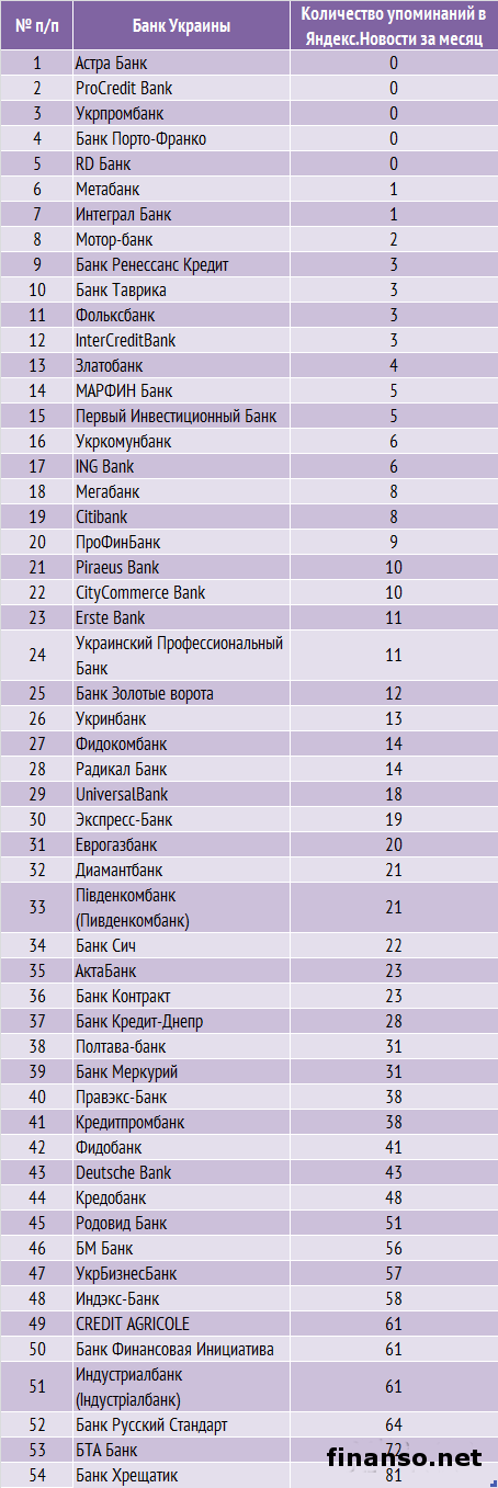 80 самых популярных банков у украинцев в ИнтернетеКатегория: Финансы