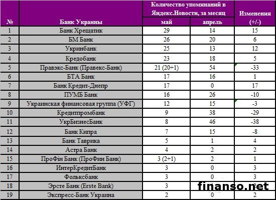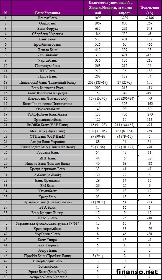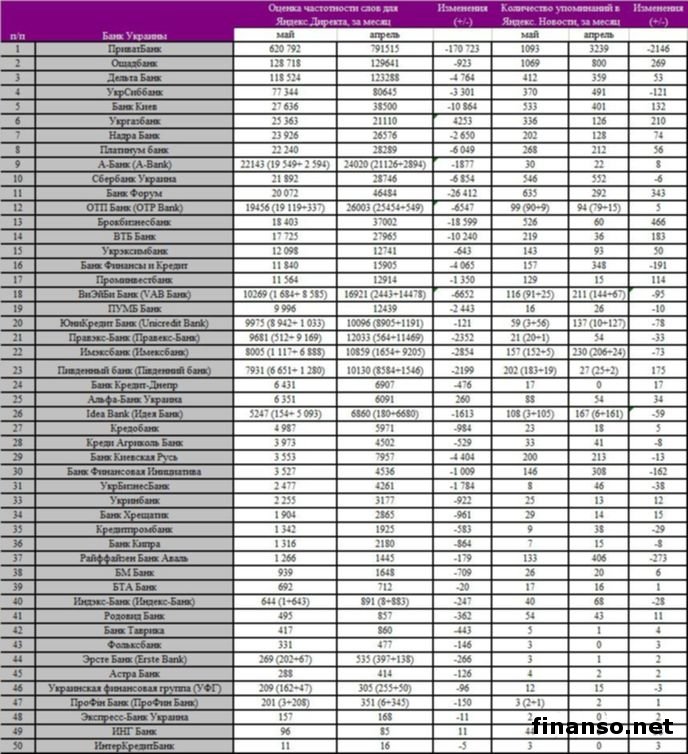 Каждый житель стран СНГ и России так или иначе имеет дело с банками и банковскими продуктами. В условии постоянного развития рынка финансовых услуг основной целью учреждений является увеличение количества клиентов. Поэтому банки стараются внедрять инновационные методы обслуживания физических и юридических лиц, способствующие привлечь и удержать клиентов. Аналитики раздела "Новости банков Украины" совместно с "Новости поисковой системы Яндекс" инвестиционного журнала "Биржевой лидер" вывели рейтинг самых популярных украинских банков на сегодня, как сообщает: "Украина сегодня: Finanso.net".Интернет-лидеры.Показатель "Биржевого лидера" рассчитан на основании: - оценки частотности слов в сервисе Яндекс.Директ за месяц, полученный с помощью wordstat.yandex.ru; - массы упоминаний о платежной системе в интернет-СМИ, выведенное агрегатором Яндекс.Новости (news.yandex.ru). Лидер рейтинга банков Украины в Интернете занял ПриватБанк, который зарекомендовал себя как инноватор в сфере онлайн-инкассации, создании платежных терминалов и приложений для смартфонов. Вторую позицию занимает ОщадБанк, государственный банк, один из крупнейших финансовых учреждений страны. В данном учреждении практически не кредитуются физические лица, специализация учреждения - депозитные вклады для населения, а кредиты оформляют только государственным корпорациям. Третья позиция принадлежит Дельта Банку, предлагающему широкий перечень продуктов для всех типов клиентов. Зарекомендовал себя как банк с стабильными и выгодными процентными ставками по депозитам, оказывает услуги по обслуживанию крупных корпоративных клиентов среднего и малого бизнеса. Последние позиции занимают: - Украинская финансовая группа; - ПроФін Банк; - Экспресс-Банк Украина; - ИНГ Банк; - ИнтерКредитБанк. ПриватБанк - лидер цитируемости в Яндекс.Новости.На базе табличных данных, предоставленных экспертами "Биржевого лидера", можно выявить, кто стал лидером по упоминаемости в Интернете: - первое место - Приватбанк с 1 093 упоминаниями в СМИ сервиса Яндекс.Новости; - второе место - ОщадБанк с 1 069 упоминаний за месяц; - третье место – Банк Форум с 635 упоминаний за месяц. Некоторыми банками Украины СМИ недостаточно интересовались.Множество банковских учреждений России часто освещались в украинских интернет-СМИ в мае, и только некоторые не попали под обзор СМИ. В учет принимаются только банки, которые имеют менее 30 СМИ за месяц. По данным приведенной таблицы видно: - малочисленное количество упоминаний в сети негативно сказывается на рейтинге банка на рынке Украины; - некоторые из виртуальных ресурсов не сотрудничают с электронными ресурсами и, как следствие, первые теряют клиентов. |