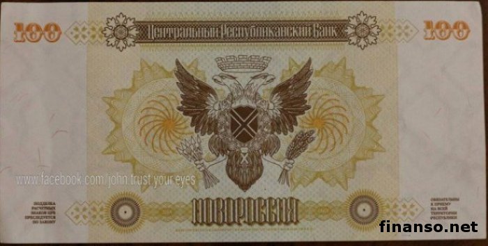 Как передают корреспонденты издания «Украина сегодня: Finanso.net», новая валюта, которая будет применяться в незаконной террористической самопровозглашенной «Новороссии», уже отпечатана в Российской Федерации и ожидает своего времени на запуск в обращение. Сайт самопровозглашенной Донецкой народной республики сообщает, что в настоящее время уже не только утвержден дизайн новых денежных знаков, но и напечатано необходимое их количество для начального внедрения. Новая валюта будет запущена в оборот сразу же после того, как руководство непризнанных миром псевдореспублик издаст соответствующий приказ. В это же время один из террористов написал на своей странице в социальной сети следующее: «Позавчера сфотографировал в Донецке образец новой валюты Донецкой и Луганской народных республик - «расчетный знак», однако не стал выкладывать фото, так как Александр Захарченко, глава непризнанной республики, пока не подписал соответствующий приказ. Но так как пару часов назад я заметил в ленте ажиотаж по данной теме, решил все же выложить некоторые детали в виде анонса». Характеристики «расчетного знака».Согласно данным боевика, в России уже отпечатана необходимая сумма валюты, она сохраняется там же до ее ввода в обращение. Первоначально «расчетный знак» будет ходить параллельно с украинской гривной, однако, по замыслу террористов, приблизительно через 8-9 месяцев национальная валюта Украины должна будет уйти из оборота псевдореспублик. Помимо прочего, боевик сообщил: «Расчетный знак» никаким образом не будет привязан к доллару США или же российскому рублю. При этом залогом его ценности станет не что иное, как объем произведенных на Донбассе товаров. Три научно-исследовательских института в Донецке в настоящее время работают над разработкой и республиканском финансовым механизмом новой валюты. Также проводятся консультации с московскими экспертами». При этом террорист рассказал, что пока «расчетный знак» будет иметь только 2 уровня защиты, а курс гривны, вероятней всего, будет примерно 1:10». |