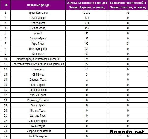 Трастовый фонд – один из наиболее тонких, универсальных организационных и юридических инструментов управления. На трасте принято базировать отдельно взятые самые значимые факторы корпоративного планирования, различные типы финансовых услуг. Кроме того, трастовая компания может стать акционером в холдинговых структурах. Суть трастового фонда заключается в том, что одно лицо передает личное имущество иному лицу/доверительному собственнику. Последний при этом владеет активами, заключает сделки в интересах учредителя. Также лицо может передать свое имущество с целью достижения определенной цели, которая оговаривается в трасте.Быстро растущий интерес к структурам такого типа легко объясняется тем, что всем интересно знать, как лучше упаковать собственность. Это нужно для того, чтобы в итоге ее можно было передать, например, по наследству. Одни защищают свое состояние от нечестных милиционеров, чиновников, другие выводят личные активы из страны. Трастовые фонды - фактически идеальный инструмент для этого. Кредиторам, правоохранительным органам трудно отыскать учредителей. А вот отнять трастовое имущество практически нереально. Трасты отличаются тем, что учредитель, который отдал в управление такой структуре акции, имущество, денежные средства, перестает быть их непосредственным владельцем. Он, его родственники могут стать получателями прибыли от таких активов - то есть бенефициарами. Как раз в связи с переходом прав собственности от учредителя к управляющему трастом получается защищать собственность от разных претензий, что отмечают аналитики издания «Украина сегодня: Finanso.net». Какие трастовые фонды пользуются популярностью у российских инвесторов в марте 2015 года, разбирались специалисты информационного портала «Биржевой лидер». Рейтинг популярности трастов у россиян в Яндексе.Для определения популярности используется система поиска Яндекс, рейтинг формируется благодаря: - сервису "Подбора слов" (wordstat.yandex.ru) для определения числа упоминаний за месяц; - региону поиска – РФ. 1 место досталось на этот раз «Траст-Компании», у нее 2 171 запрос в поисковой системе Яндекс. 2 место за «Траст-Сервисом», по нему за месяц было произведено 424 запроса в системе Яндекс. 3 место - «Трастинвест», по ней произвели 221 запрос за март месяц. Далее следуют фонды: - Дельта-фонд; - Арго.Н; - Сапфир-Траст; - Агро Траст; - Премиум-фонд; - Кон-траст; - Международная трастовая компания; - Трастовая телекоммуникационная компания; - Лит-траст. |