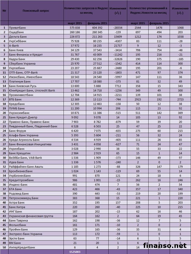 Все банковские учреждения в настоящее время просто вынуждены все время заботиться о популярности и репутации. Вопрос в том, что, к примеру, на территории Украины еще с периода СССР сформировался стереотип, что банкам нельзя доверять. В связи с этим многие граждане страны, даже спустя двадцать лет после распада Советского Союза, так и не могут решиться доверить свои личные денежные средства банковским учреждениям. Это как раз и считается главной причиной того факта, что украинские банки постоянно предлагают разные бонусы, акции, заманчивые предложения. Подробностями интересовались корреспонденты издания «Украина сегодня: Finanso.net». Какие именно банки, действующие в Украине, признаны наиболее известными среди граждан государства? Ответ на этот вопрос уже отыскали журналисты информационно-аналитического издания «Биржевой лидер». Рейтинг известности банков Украины за март 2015 года.Рейтинг опирается на два объективных критерия в системе поиска Яндекс: - оценка частотности слов для системы Яндекс.Директ за месяц, что рассчитана при помощи сервиса wordstat.yandex.ru; - число упоминаний за то же самое время о системе оплаты в онлайн-СМИ, электронных информагентствах, что рассчитано с помощью агрегатора Яндекс.Новости (news.yandex.ru); - регион оценки - Украина. Место лидера на этот раз досталось банку ПриватБанк – самому большому банку в государстве. Он считается по праву инноватором в таких областях работы, как создание приложений для смартфонов, платежных терминалов, онлайн-инкассация. Все это вместе оказывает крайне благотворное влияние на рост популярности самого банка среди физических и юридических лиц (575 838 запросов в системе поиска Яндекс за март месяц). Второе место за банком ОщадБанк – это госбанк, практически не кредитующий физлиц. С его помощью можно оформить кредит лишь госкомпаниям, открыть вклад (260 186 запросов). Третье место принадлежит банку Дельта Банк, что предлагает большой выбор продуктов и услуг для клиентов. «Он отличается выгодными и стабильными ставками по вкладам, предоставляет услуги по обслуживанию малого и среднего бизнеса, больших корпоративных клиентов», - отмечают аналитики брокерской компании Forex-Market. У Дельта Банка за последний месяц всего зафиксировано 226 872 запроса в Яндекс. Явные аутсайдеры: - Эрсте Банк – 63 запроса за месяц в Яндекс; - ВМ Банк – 21 запрос за месяц в Яндекс; - ИнтерКредитБанк – 6 запросов за месяц в Яндекс. |