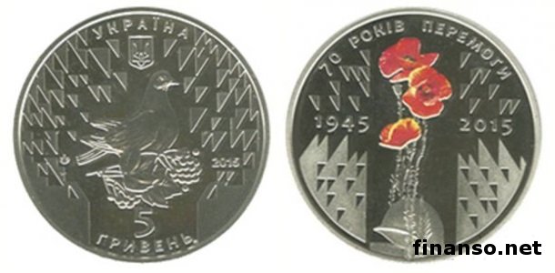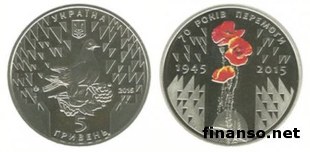 Аверс (лицевая сторона) выпущенной монеты в 1 гривну аналогична введенной в оборот в 2004 г. монете с Владимиром Великим. В то же время на обратной ее стороне вместо князя отображена стилизованная композиция с солдатской каской и цветами мака, надпись 1945 – слева, а справа – 2015, пламя свечей символизируют треугольники, вверху расположена надпись «70 лет Победы». Надпись полукругом «Украина» размещена на лицевой части новой монеты в 5 гривен, под которой отражен малый Государственный герб Украины, а также стилизованная композиция, символизирующая собой жизнь: дерево рода, в гнезде на фоне которого на ветке калины сидит птица. Справа расположен год чеканки этой монеты – 2015, слева логотип Банкнотно-монетного двора НБУ, а внизу номинал – 5 гривен. На обратной стороне (реверсе) монеты отображена стилизованная композиция в виде солдатской каски и мака – символов памяти, надпись «1945» - слева, а справа – 2015, пламя свечей символизируют треугольники, вверху расположена надпись полукругом «70 лет Победы». Монеты увековечивают подвиг украинского народа во Второй мировой войне.В сообщении НБУ говорится, что эти монеты увековечивают подвиг украинского народа и его большой вклад в победу антигитлеровской коалиции во Второй мировой войне. 70-летию Победы над нацизмом в Европе посвящены выпущенные банком монеты. Начиная с первых дней этой войны и до октября 1944 г., центральным участком всего европейского театра военных действий Второй мировой войны была территория Украины, которая понесла огромные материальные и людские потери. В разработке указанных монет принимали участие художники Владимир Таран и Александр и Сергей Харуки. Скульптуры создавали Анатолий Демьяненко и Владимир Атаманчук. Напомним, что в день рождения Тараса Шевченко с 9 марта текущего года в Украине запущена в оборот новая денежная купюра номиналом в сто гривен. НБУ разослал украинским банкам письмо соответствующего содержания. В соответствии с этим, устанавливается, что банкноты номиналом в сто гривен образца 2014 г. являются законным средством для платежей на территории Украины и без каких либо ограничений по их номинальной стоимости обязательны к приему всеми юридическими и физлицами на территории страны по всем видам платежей. При этом примечательно, что названная банкнота функционирует в обращении с банкнотами образца 1996 и 2005 гг. |