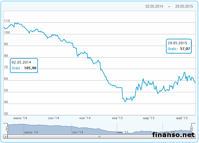 Нефть Urals упала в стоимости в 2 раза за годКатегория: Финансы
