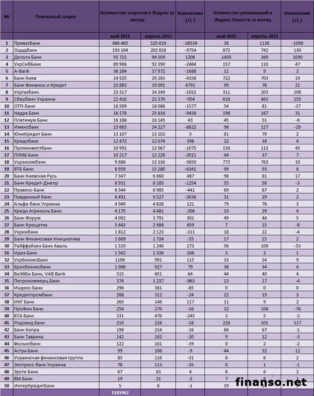 Банковские учреждения - финансовые организации, главными типами деятельности которых считается привлечение, размещение денежных средств, проведение расчетов. Банковские учреждения выступают посредниками между теми, кто нуждается в дополнительных ресурсах, и теми, у кого есть свободные финансовые средства. Подробностями интересовались корреспонденты издания «Украина сегодня: Finanso.net». Какие же банковские учреждения, которые работают на украинской территории, признаны самыми известными среди жителей этого государства, выясняли специалисты журнала онлайн для деловых людей по экономике «Биржевой лидер». Рейтинг ТОП-известности банков Украины в мае этого года.Рейтинг «Биржевого лидера» опирается на два вполне объективных критерия в системе поиска Яндекс: - оценка частотности слов для системы поиска Яндекс.Директа за один месяц, которая рассчитана при помощи сервиса wordstat.yandex.ru; - число упоминаний за тот же период о системе оплаты в онлайн-масс-медиа, электронных информагентствах, что рассчитано посредством агрегатора Яндекс.Новости (news.yandex.ru); - регион оценки - Украина. Первое место - ПриватБанк. Это самый большой украинский банк в государстве. Он считается по праву настоящим инноватором в подобных областях деятельности, как формирование приложений для платежных терминалов и смартфонов, онлайн-инкассация, что на самом деле оказывает благотворное влияние на рост известности банковского учреждения у физических и юридических лиц (486 485 запросов в системе поиска Яндекс, что были произведены украинским жителями в мае этого года). На втором месте – ОщадБанк - госбанк, фактически не кредитующий физлиц. При его помощи можно оформить кредит лишь госфирмам, можно также открыть депозитный счет инвесторам (193 104 запроса). Третье место рейтинга отдано по праву Дельта Банку, что предлагает обширный выбор продуктов для клиентов. Он отличается выгодными и стабильными ставками по депозитам, также предоставляет услуги по обслуживанию малого и среднего бизнеса, больших корпоративных клиентов (95 715 запросов в системе поиска Яндекс за последний месяц). Явные аутсайдеры: - Астра Банк – 99 запросов в Яндекс; - Украинская финансовая группа – 85 запросов в Яндекс; - Экспресс-банк Украина – 78 запросов в Яндекс; - Эрсте Банк – 67 запросов в Яндекс; - ВМ Банк – 19 запросов в Яндекс; - ИнтерКредитБанк – 5 запросов. |