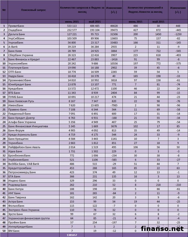 Известен ТОП популярных банков Украины за июнь 2015 годаКатегория: Финансы