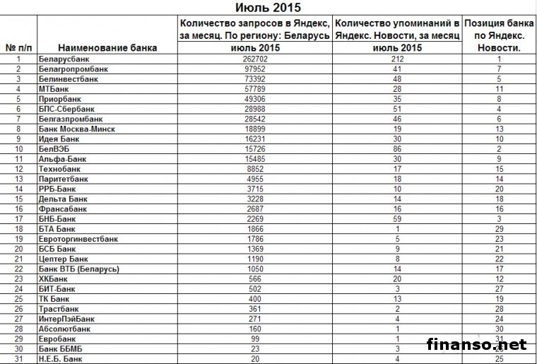 Эксперты информационно-аналитического портала «Бизнес-лидер» представили вниманию обновленный рейтинг банков Беларуси за июль текущего года. Об этом сообщают корреспонденты издания для инвесторов «Украина сегодня: Finanso.net». Кратко ныне сложившуюся ситуацию в стремлении банков завоевать доверие клиентов можно охарактеризовать понятиями «летнее затишье» или «пора отпусков».