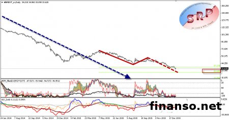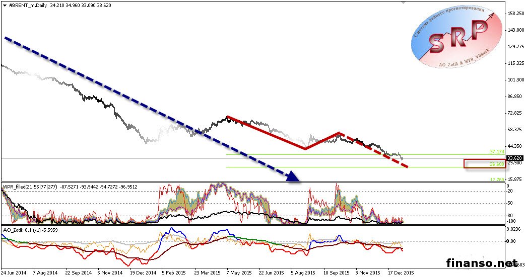 В период прошлых продаж на бирже в Москве национальная валюта России в очередной раз возобновила приостановившееся в середине дня падение. Ослабление позиций рубля стартовало в начале недели с открытием продаж, когда в течение нескольких минут биржевой евро курс достиг нового рекорда, сумев вырасти до 83,97 рубля. Валюта Америки также сильно возросла, достигнув к 10 часам 10 минутам уровня в 76,12 рубля. У максимальной отметки долларовый курс составлял 76,5 рубля. В середине дня российская нацвалюта отчасти отыграла снижение, уже к 15 часам доллар снизился до 75,19 рубля, евро – до уровня в 82 рубля. Подробностями интересовались корреспонденты информационно-аналитического издания по экономике «Украина сегодня: Finanso.net». Как стало известно журналистам информационно-аналитического издания по экономике и предпринимательству «Биржевой лидер», в прошлый четверг в первый раз за последние тринадцать лет котировки фьючерсов нефти Brent и WTI во время продаж снижались дальше уровня в 33 доллара за баррель. Цена российского бренда Urals рассчитывается по базе Brent. Причиной послужили проблемы китайской экономики, рекордные по своим размерам запасы топлива в Америке. Тем не менее рынок затоварен достаточно давно. За последние 1,5 года нефть утратила 70 процентов стоимости. Специалисты призывают экспортеров сырья чудес не ждать.ВБ ухудшил свои прогнозы относительно роста общемировой экономики на текущий год (от 3,3 процента до 2,9 процента) в связи с Китаем, развивающимися странами, которые считались основным драйвером роста спроса на нефть. Поэтому сырье в нынешнем году, скорее всего, останется столь же дешевым. Зависимым от экспорта нефти государствам – таким как России и Бразилии – ВБ обещает продолжение финансового снижения (ВВП России, по его предположениям, снизится примерно на 0,7 процента). На подобном фоне уместно вспомнить прогноз специалистов банка Goldman Sachs за сентябрь, где было отмечено: сохранение избыточного предложения на рынке может стать причиной снижения цен до ступени в 20 долларов за баррель. Важно добавить: при рассмотрении графиков инструмента BRENT на рынке валют Форекс при помощи инструментария СРП, каждый может наблюдать в структуре глобального медвежьего тренда алгоритм АВС уровня Daily. При этом следующая цель волны С заключается у уровня в 26,60. |