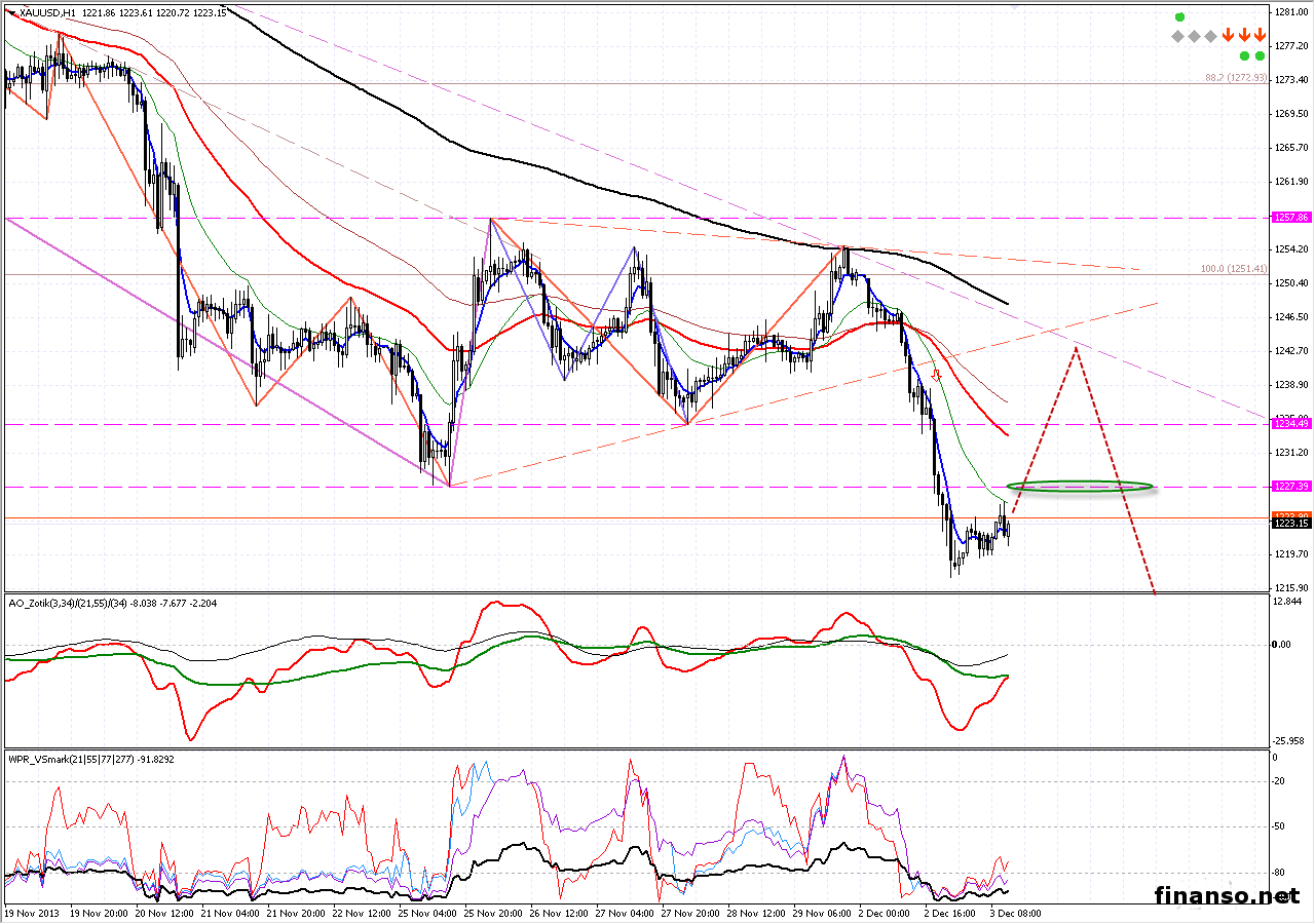 Разговоры о возможном изменении направления движения золота утихли после вчерашних новостей из США и последующего обновления минимума. Укрепление доллара повлияло не только на золото, но и на весь рынок драгоценных металлов. О том, как будут обстоять дела дальше на этом рынке, рассказывают корреспонденты издания «Украина сегодня: Finanso.net».Падение золота закономерно.Прошлая неделя дала возможность вздохнуть индустриям, связанным рынком драгоценных металлов, даже некоторое время могло показаться, что рынок прекратил бесконечное падение и подарил надежду на восстановление своих позиций. Однако, как показала реальность, переоценка стоимости золота еще не достигла своего логического окончания, а рынок стремительно продолжил свой тренд вниз. Примеру золота последовали и другие представители этого рынка. Так, серебро сходу потеряло 100 пунктов, пробив одним махом сильный уровень поддержки 19.15 доллара за унцию. Сейчас цена слегка поднялась вверх и ведет подготовку ко второму пробитию и дальнейшему закреплению под этим уровнем. Сверху есть только далекий уровень сопротивления 20.09, до которого у цены, скорее всего, не хватит потенциала, так как еще стоит пройти уровень, за которым цена сейчас закрепляется 19.57 доллара за унцию. Платина провела закрепление за очень сильным уровнем поддержки, который был зафиксирован 15 октября 2013 года - 1359.21 доллара за унцию. Таким образом, для дальнейшего движения вниз нет каких либо сильных сопротивлений до уровня 1293.00 доллара за унцию, до которого еще идти и идти. Такому же примеру последовал и палладий, который после длительного флета смог найти силы и пройти уровень поддержки 713.73 доллара за унцию, вплотную приблизившись к 708.58 доллара за унцию, двойное пробитие этого уровня скажет о выходе из долгосрочного флета, что всего лишь подтвердит общую тенденцию рынка драгоценных металлов. Перспективы и цели дальнейшего движения.Повысив волновой уровень на прошлой неделе, золото подготовило почву для дальнейшего нисходящего движения. Теперь волна импульса, пробившая уровень сильной поддержки 1227.39 доллара за унцию, выглядит закономерной и хорошо вписывается в волновую разметку. Теперь стоит ждать закрепления за этим уровнем и подход к следующей поддержке 1208.77 доллара за унцию. Ее пробой вплотную приблизит к минимуму 28 июня 2013 года, около которого стоит быть очень внимательными. |